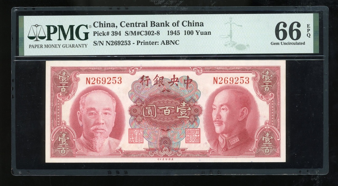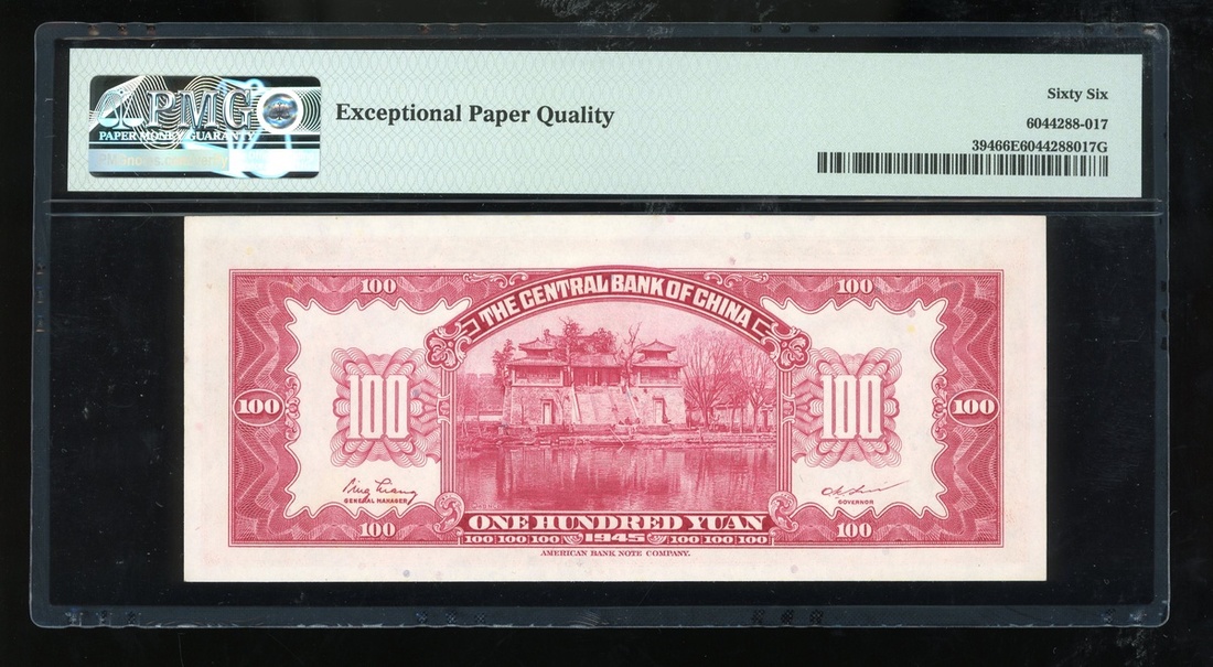 1945年中央銀行100元,編號 N269253,PMG 66EPQ