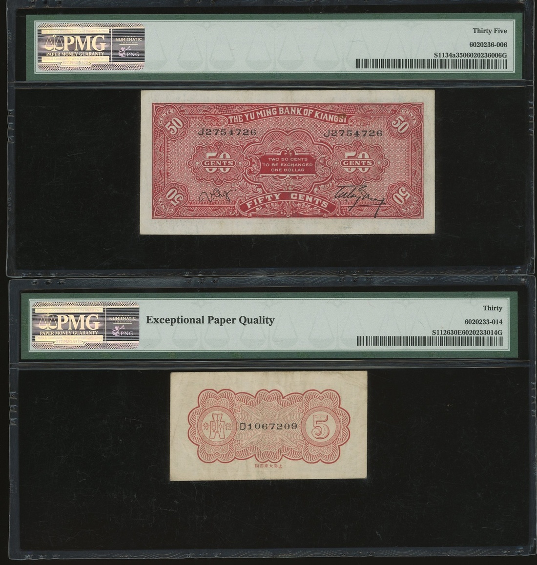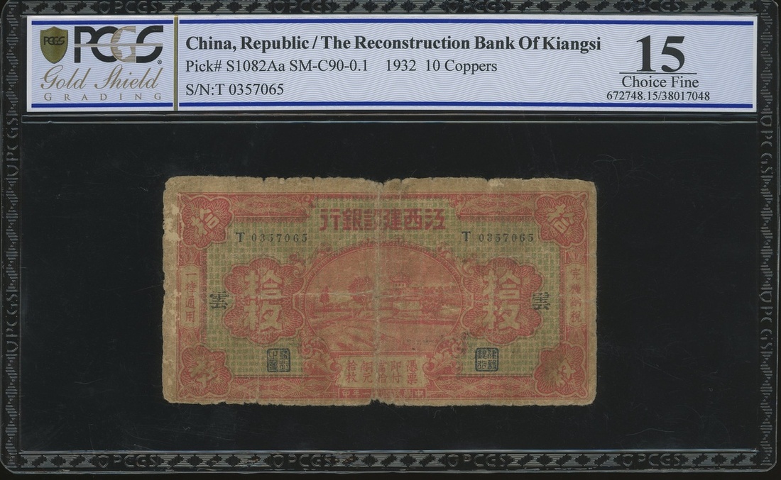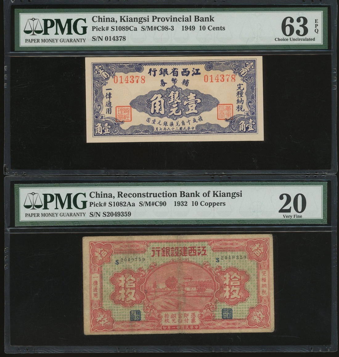 民國時期贛省紙幣一組7枚,包括江西裕民銀行與江西省銀行,銅元10枚至5角,均PCGS Gold Shield 15-PMG 63EPQ(7)