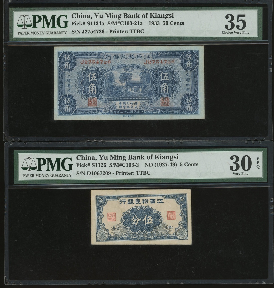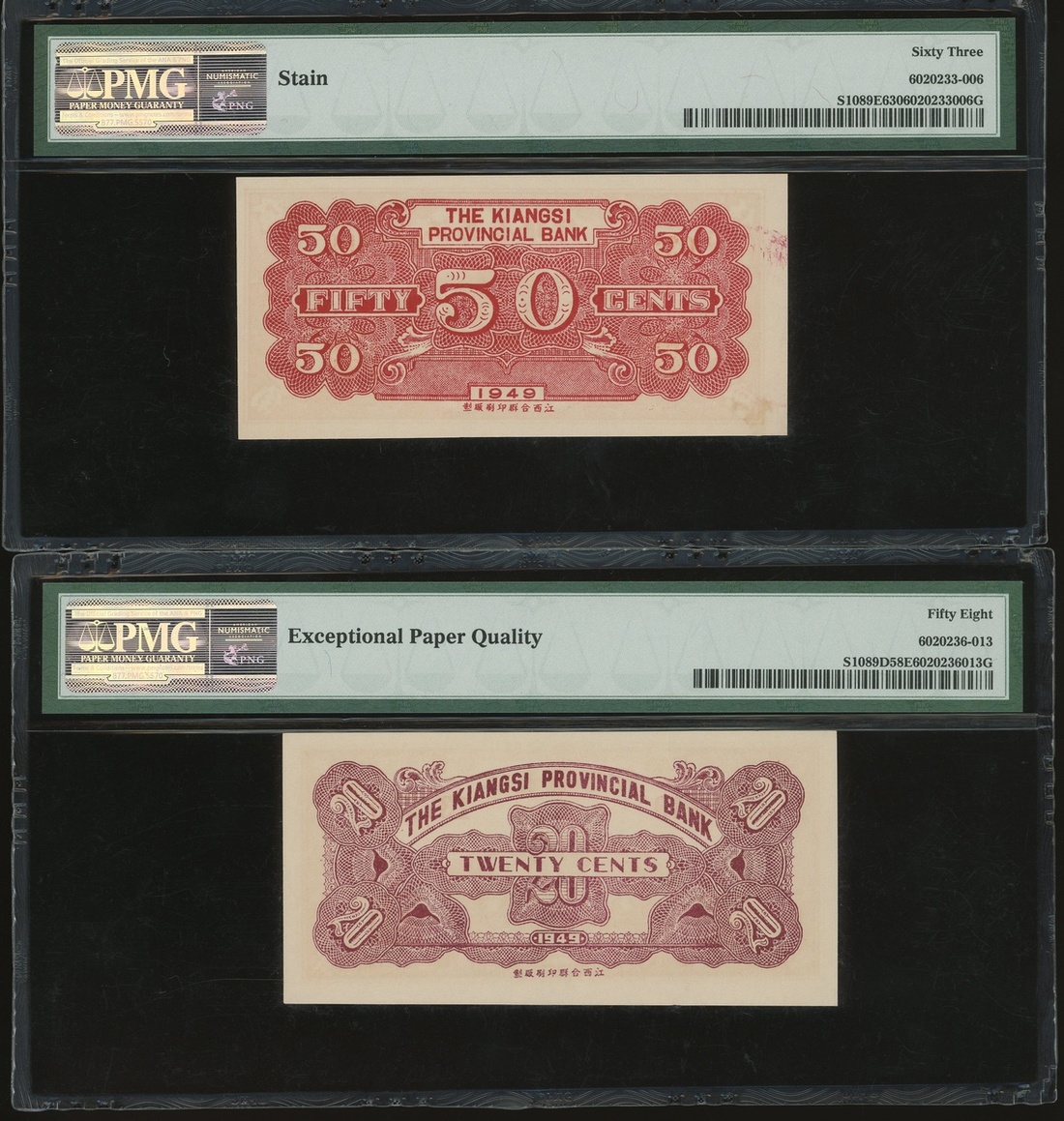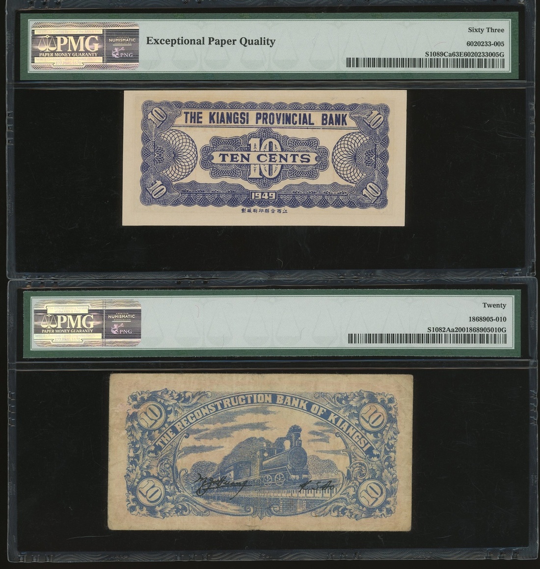 民國時期贛省紙幣一組7枚,包括江西裕民銀行與江西省銀行,銅元10枚至5角,均PCGS Gold Shield 15-PMG 63EPQ(7)