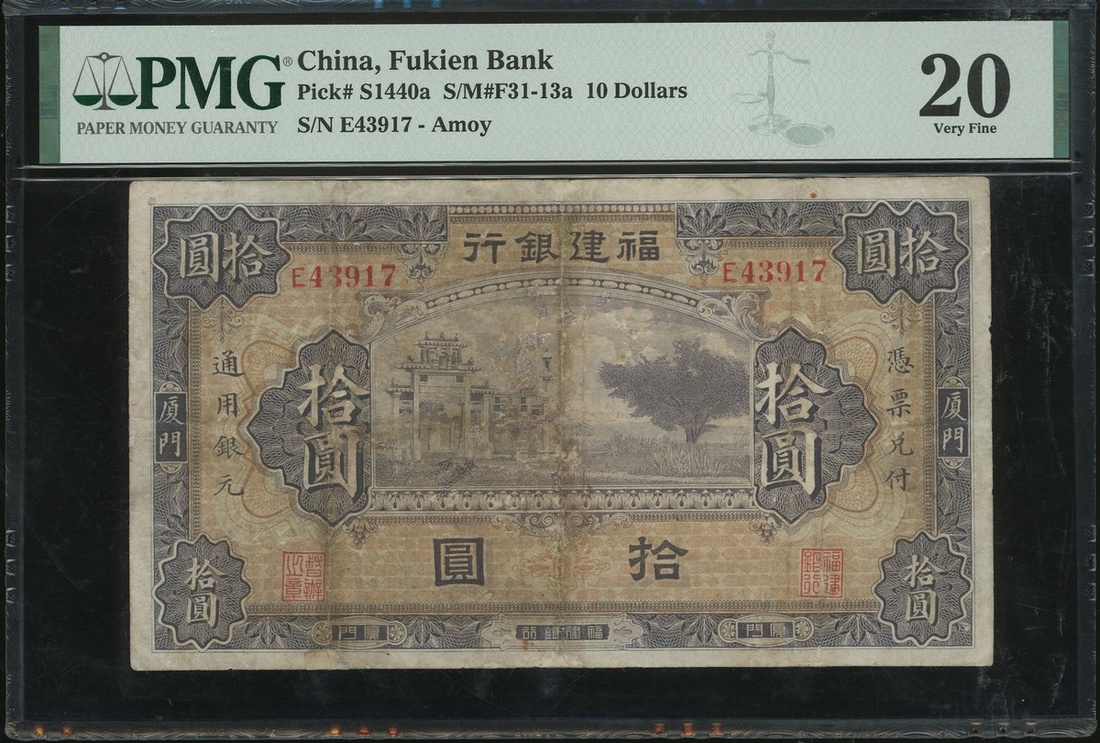 Fukien Bank, $10, Amoy, ND, serial number E43917, (Pick S1440a), PMG 20 Very Fine (Repaired) .