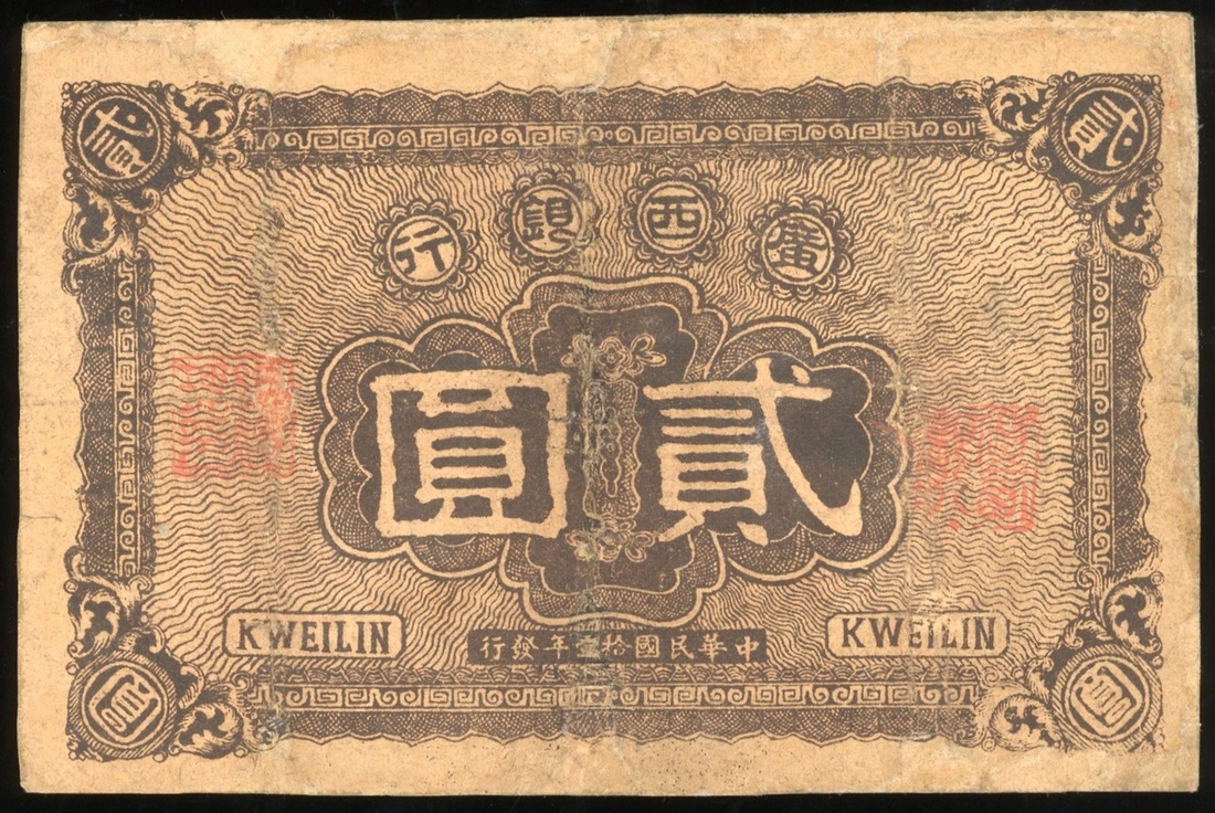 Kwangsi Bank, 2 yuan, Kweilin, Year 11(1922), (Pick S2375), fine, repaired.