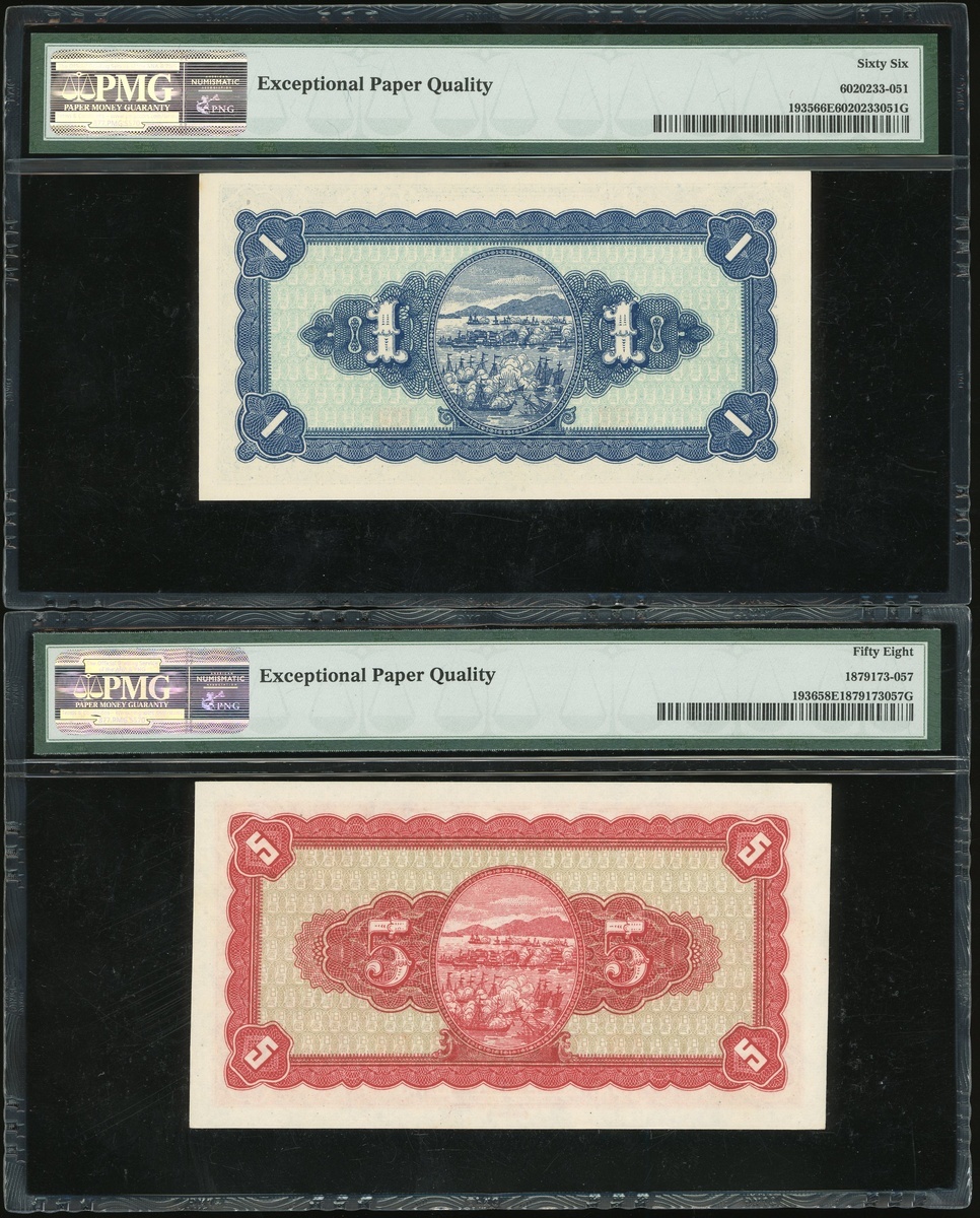 台灣銀行紙幣一組7枚,包括1946年1元,5元,10元2枚,5002枚,及1948年1000元,PMG 30-66EPQ(7)