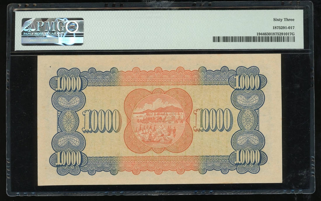 Bank of Taiwan, a group of 3x notes, a consecutive pair of 50 cents, Year 38(1949), two letter prefix GW299729-30, and 10000 yuan, Year 37(1944), serial number BF454357, (Pick 1949a and 1944), 50 cents graded PCGS Banknote 66PPQ and 10000 yuan PMG 63 (3)