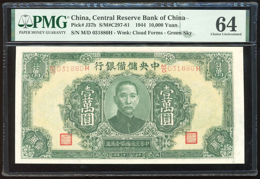 1944年中央儲備銀行10000元,編號M/D031880H,PMG 64