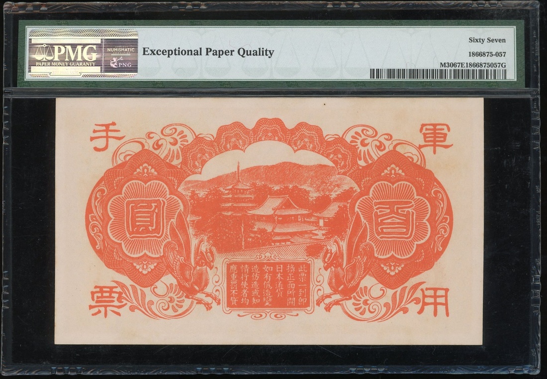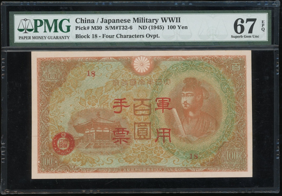 Japanese Invasion Money, 100 yen, no date (1945), block serial 18, (Pick M30), PMG 67EPQ Superb Gem Uncirculated