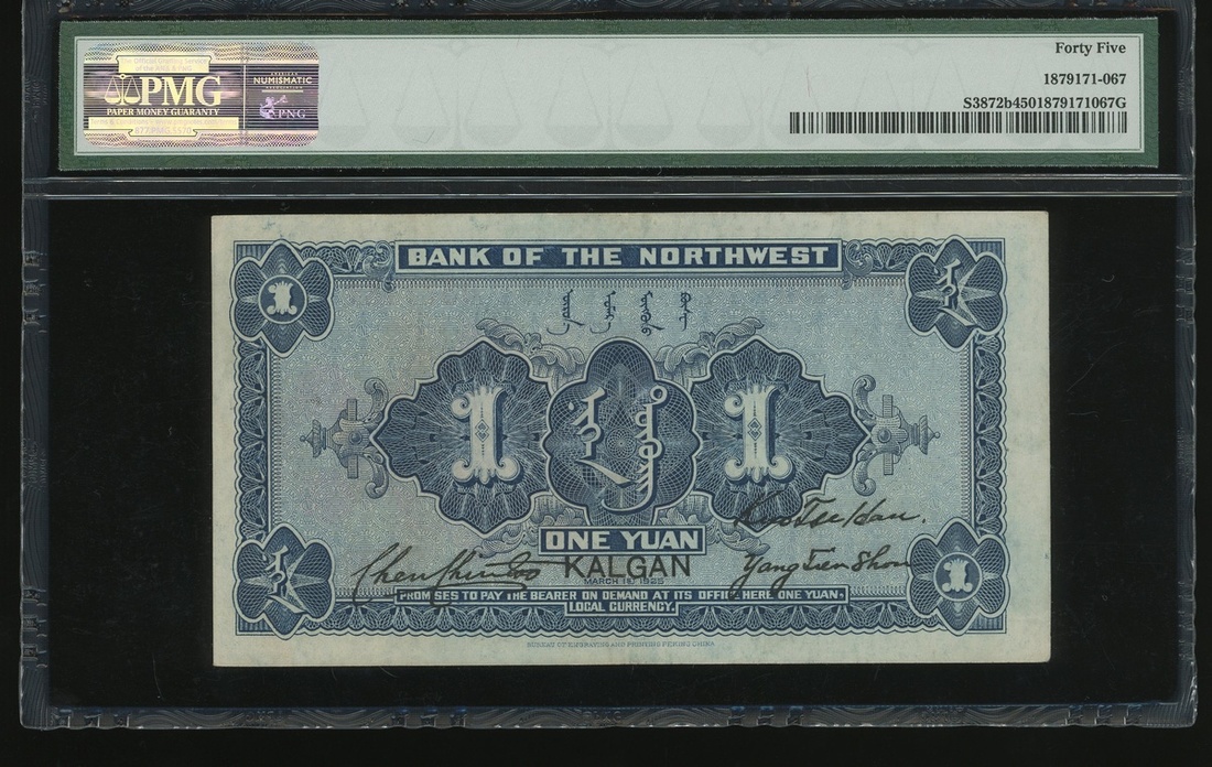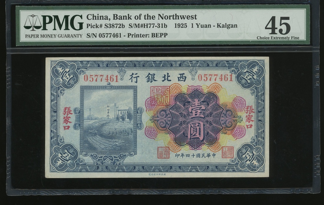 Bank of Northwest, 1 yuan, Kalgan, Year 14(1925), serial number 0577461, (Pick S3872b), PMG 45 Choice Extremely Fine.