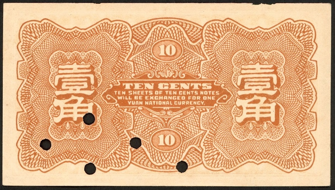 Shimen Chamber of Commerce, 1 jiao, Year 19(1930), serial number A0380660A, (Pick unlisted), uncirculated, missing pieces at upper edge.