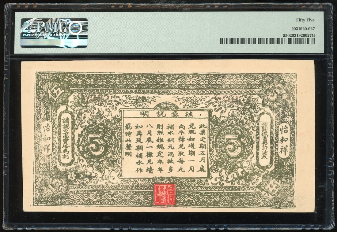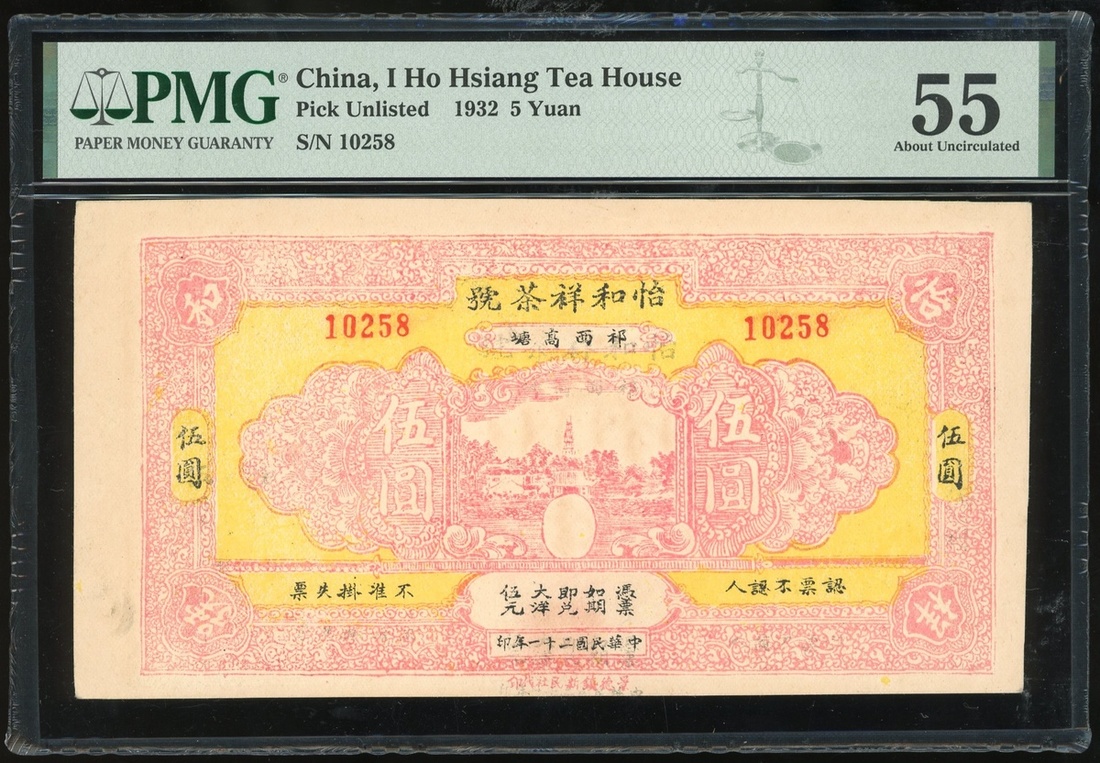 1932年怡和香茶館5元,編號10258,PMG 55