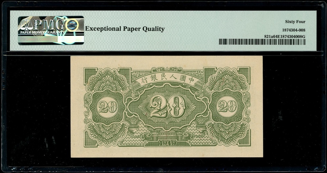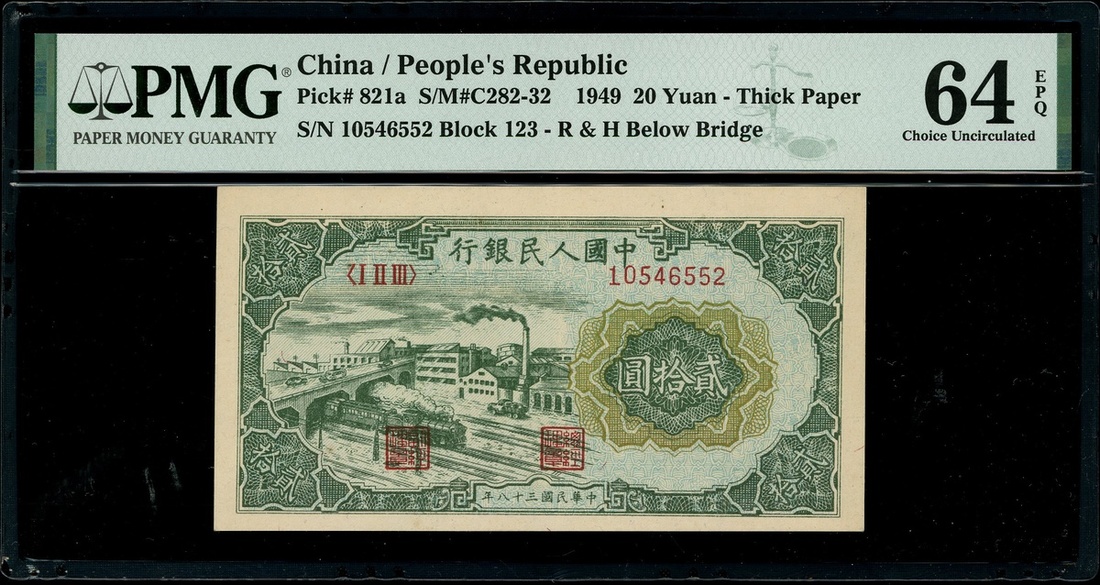 1949年中國人民銀行第一版人民幣20元「立交橋」,編號I II III 10546552,PMG 64EPQ