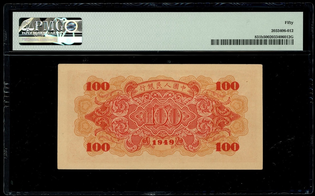 1949年中國人民銀行第一版人民幣100元「紅輪船」,編號X II VIII 83547229,PMG 50