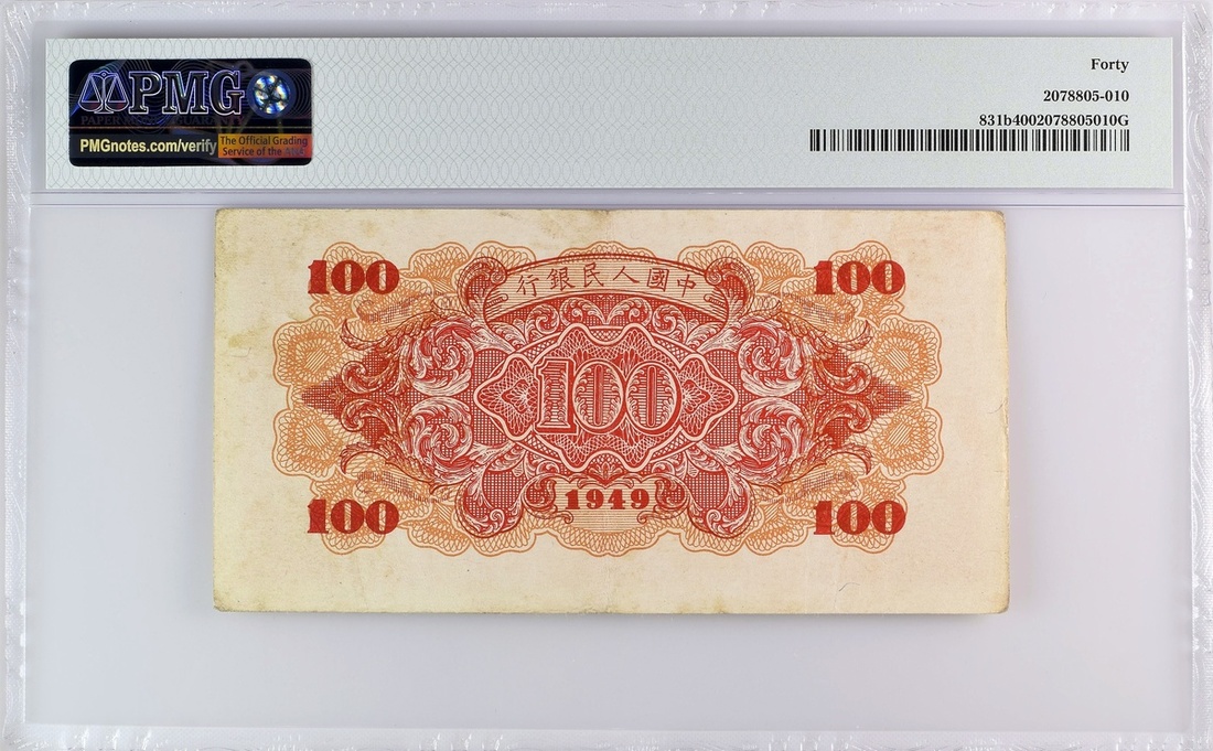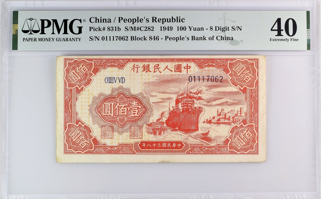1949年中國人民銀行第一版人民幣「紅輪船」,編號VIII IV VI 01117062,PMG 40