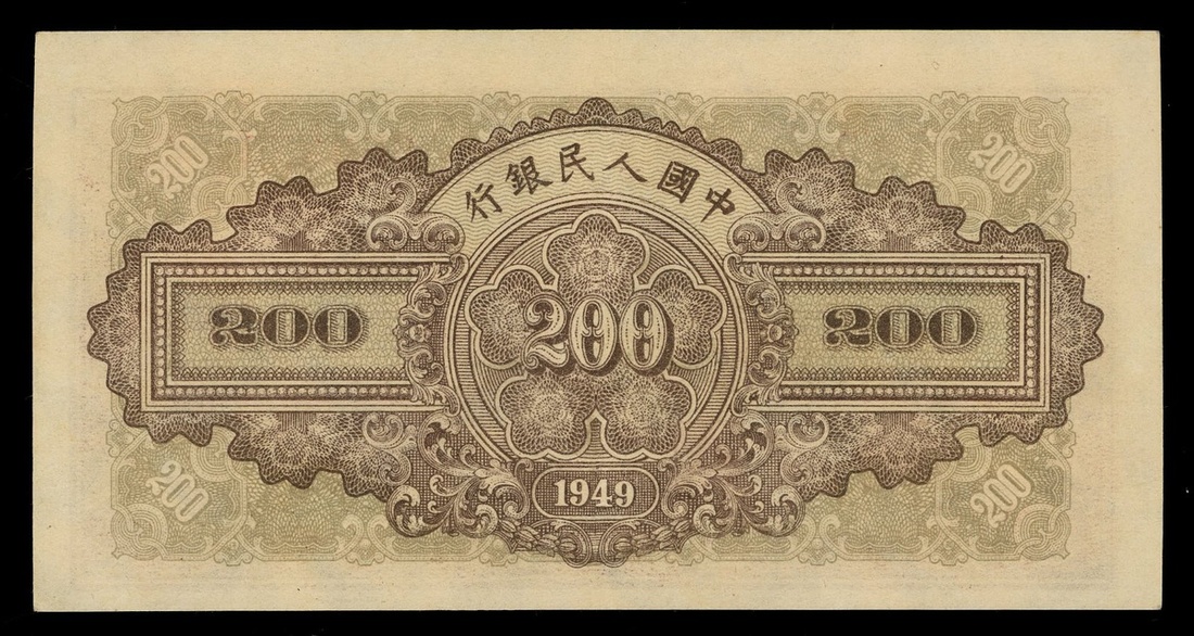 1949年中國人民銀行第一版人民幣200元「排雲殿」,編號X VI V 660354,印刷輕微移位,GEF,少見,售後不設退換