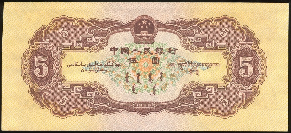 People’s Bank of China, 2nd series renminbi, 1956, 5 yuan, seagull watermark, serial number I V VIII 7317217, (Pick 872), pressed almost uncirculated.