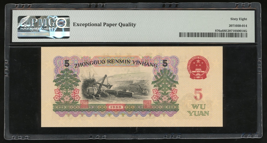 1960年中國人民銀行第二版人民幣5元,編號 IV IV VII 1399264,PMG 68EPQ