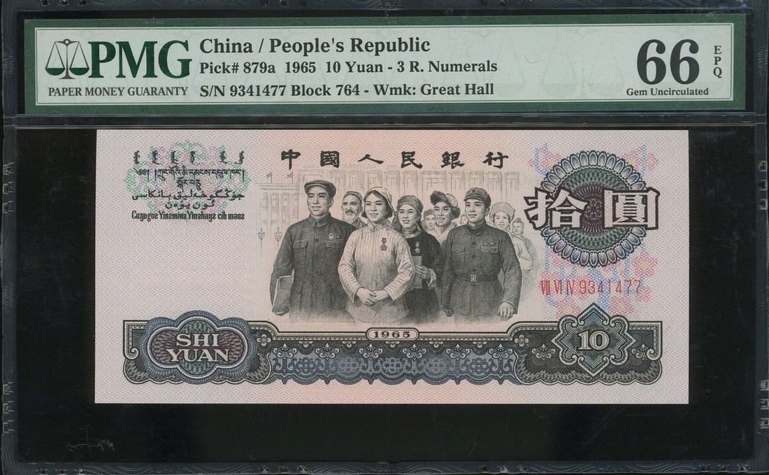 1965年中國人民銀行10元,編號VII VI IV 9341477,PMG 66EPQ