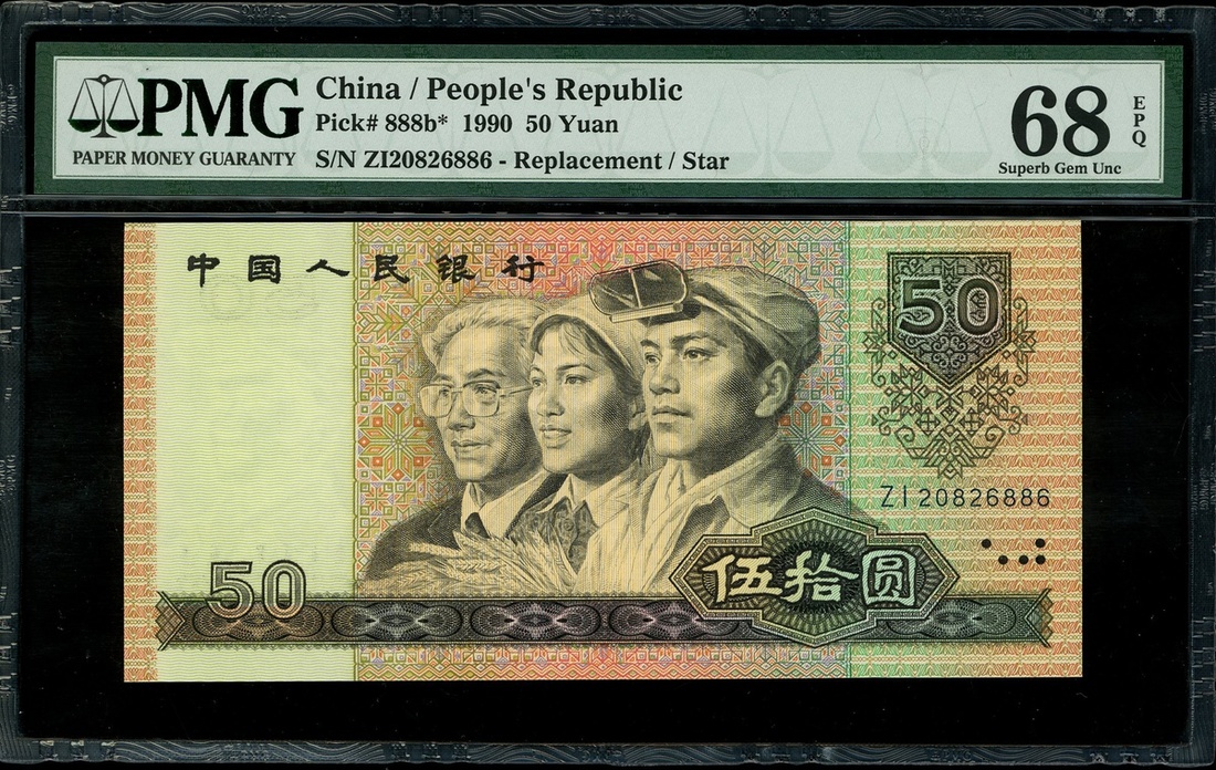 People's Bank of China, 4th series renminbi, 1990, 50 yuan, replacement serial number ZI20826886,