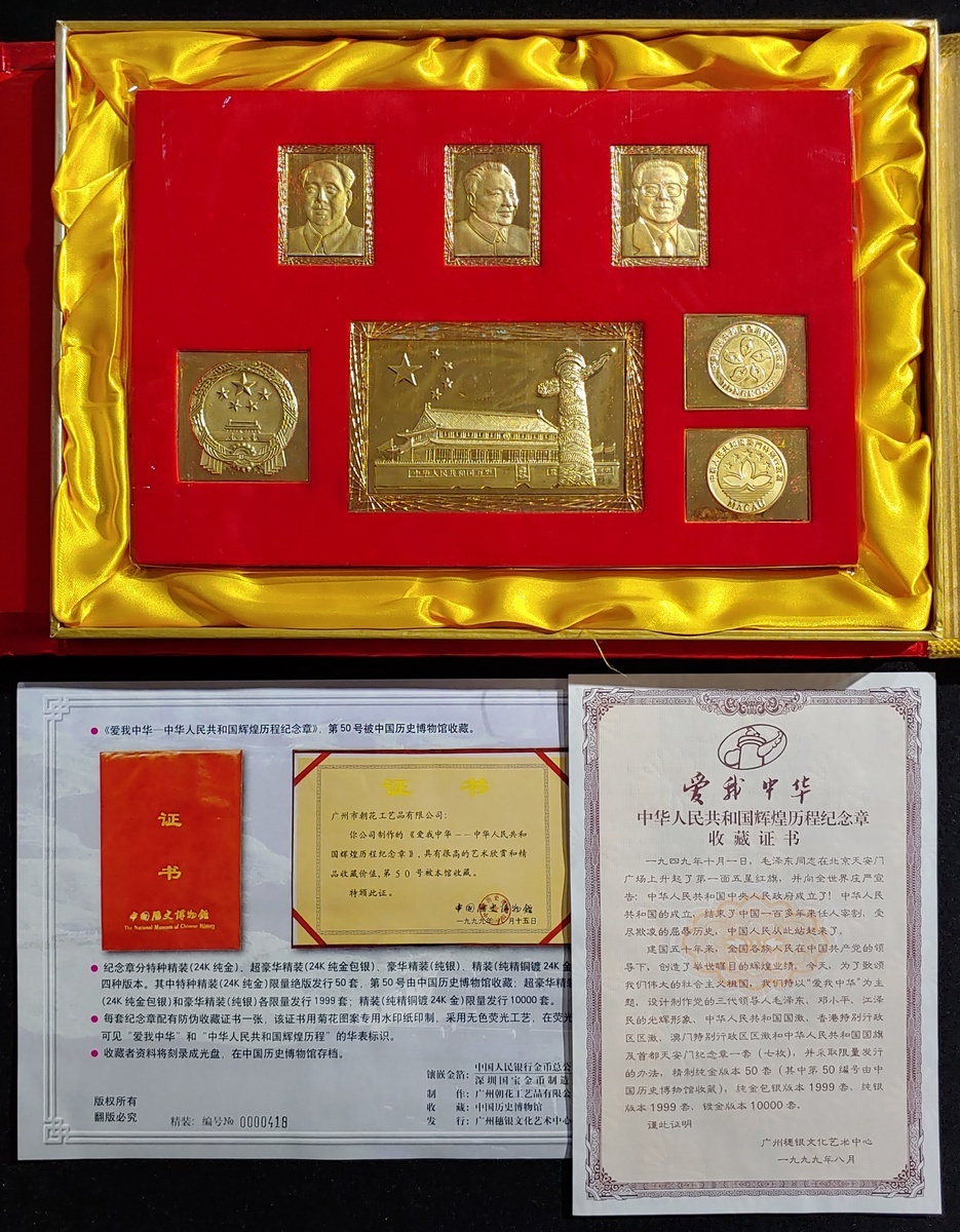 People's Republic of China, three commemorative sets, one for the 4th series RMB and another for the 5th series RMB, also a 'Love Our China' commemorative medals set, 1999,