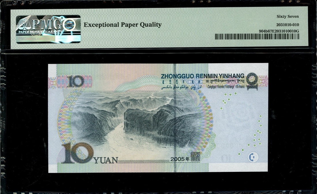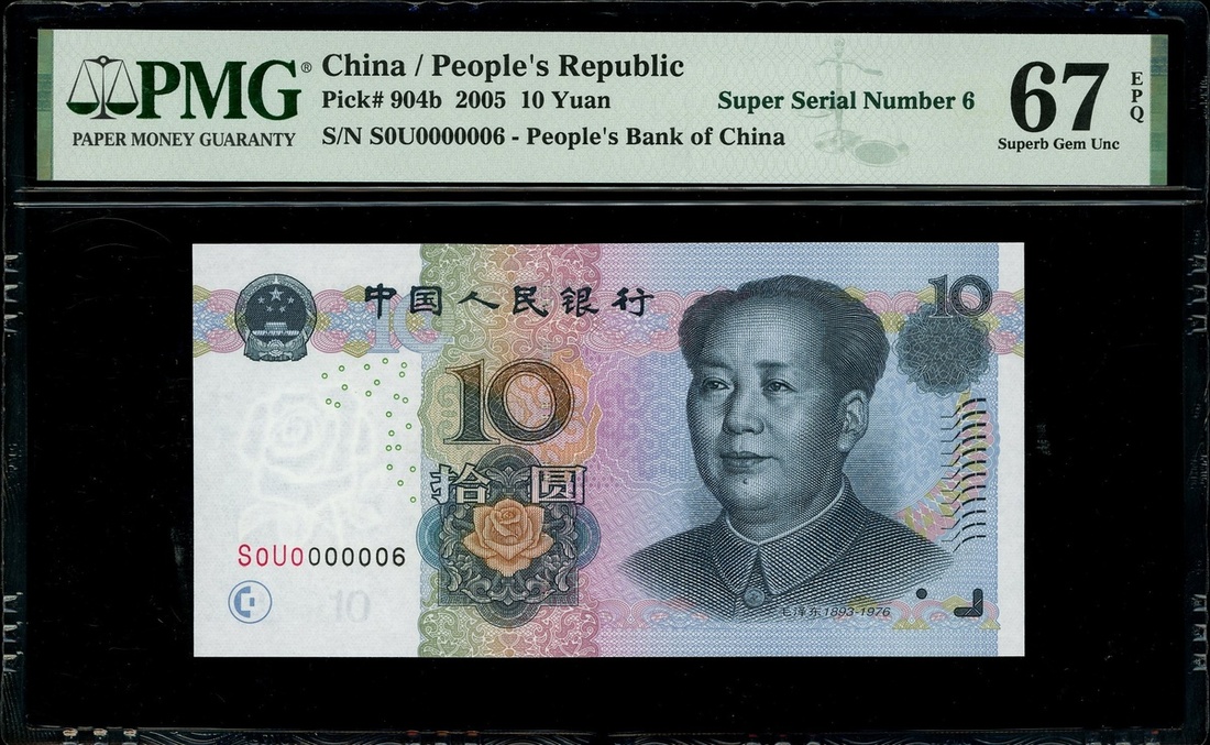 2005年中國人民銀行第五版人民幣10元,細編號 S0U0000006,PMG 67EPQ