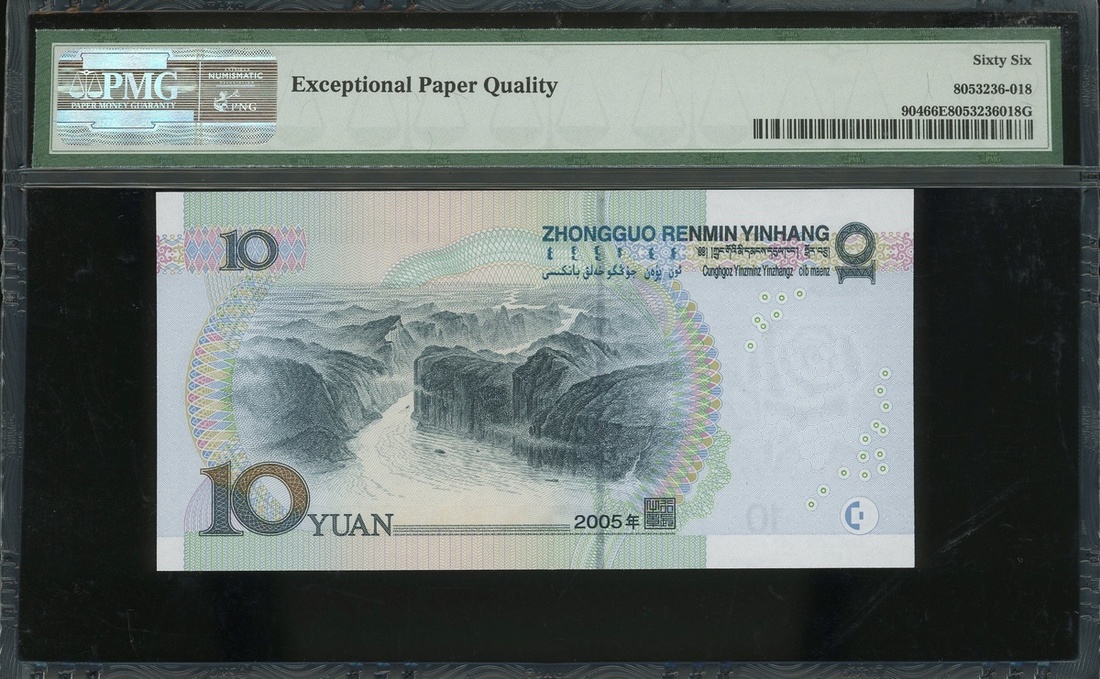 2005年中國人民銀行第五版人民幣10元,編號Z0R7777777,PMG66EPQ