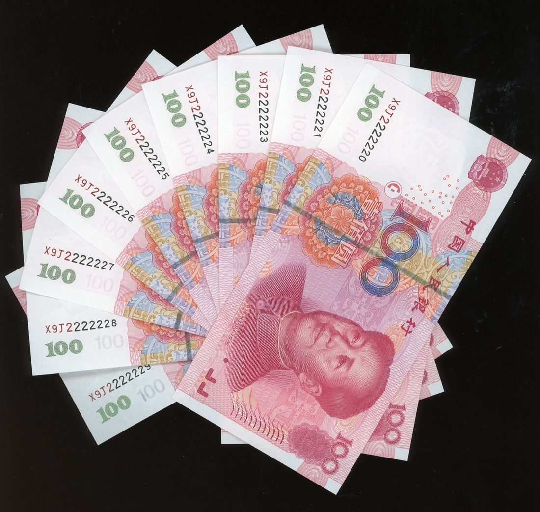 People's Bank of China, 5th series renminbi, 2005, a consecutive group of 10x 100 yuan, serial numbers X9J22222220-229, along with a seal certificate from bank,