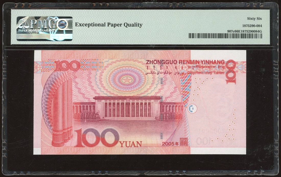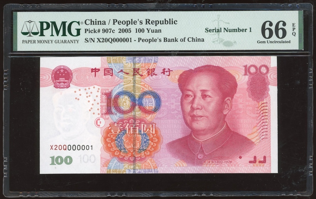 2005年中國人民銀行第五版人民幣100元,細編號X20Q000001,PMG 66EPQ