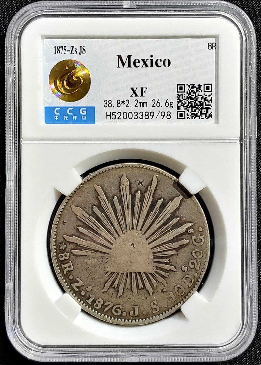 Mexico, silver 8 reales, 1875-Zs JS, Zhong Qian XF, #H5 2003389/98.