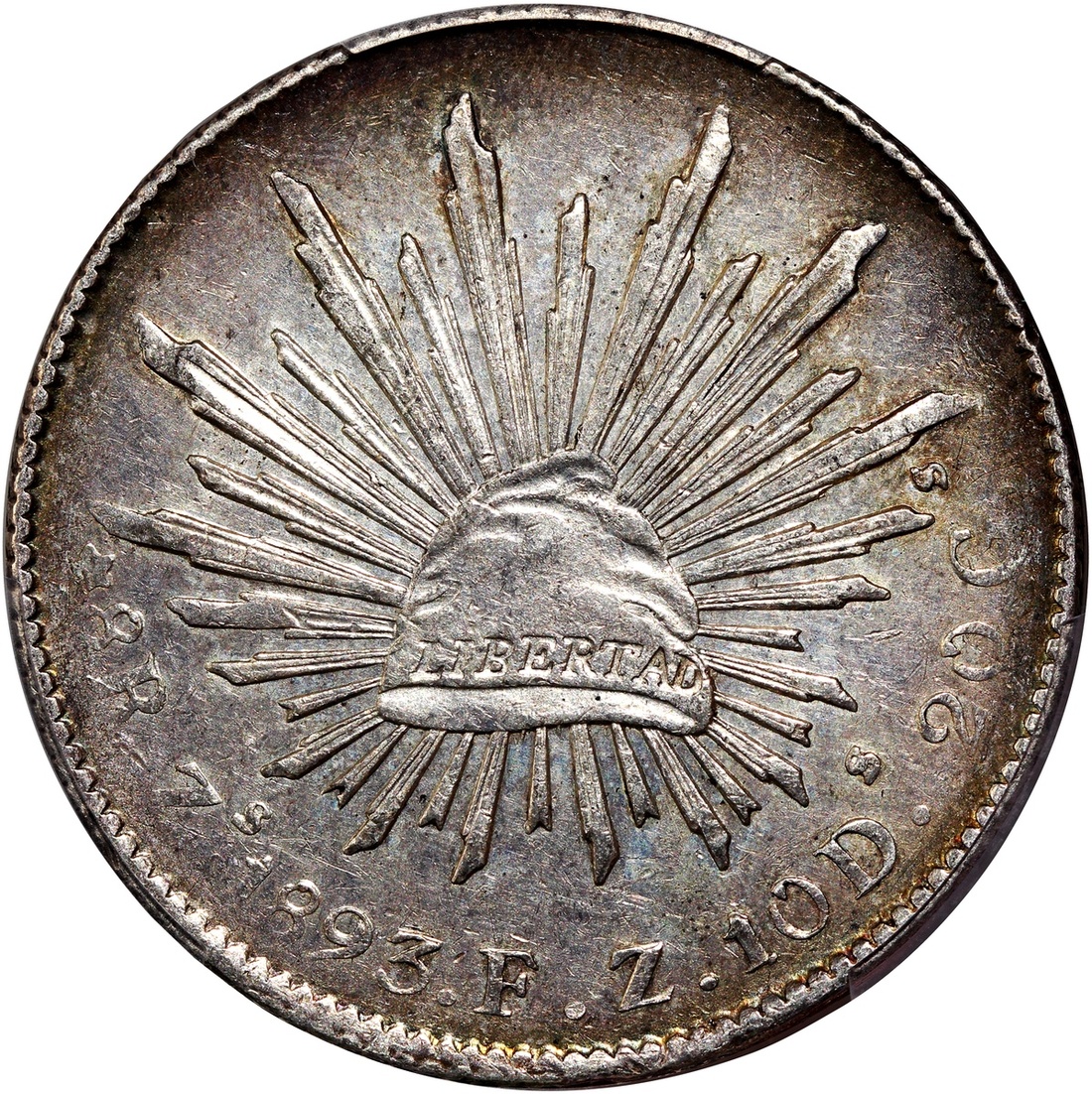 Mexico, silver 8 Reales, 1893-Zs FZ, (Zs79), PCGS AU58, #43148596.