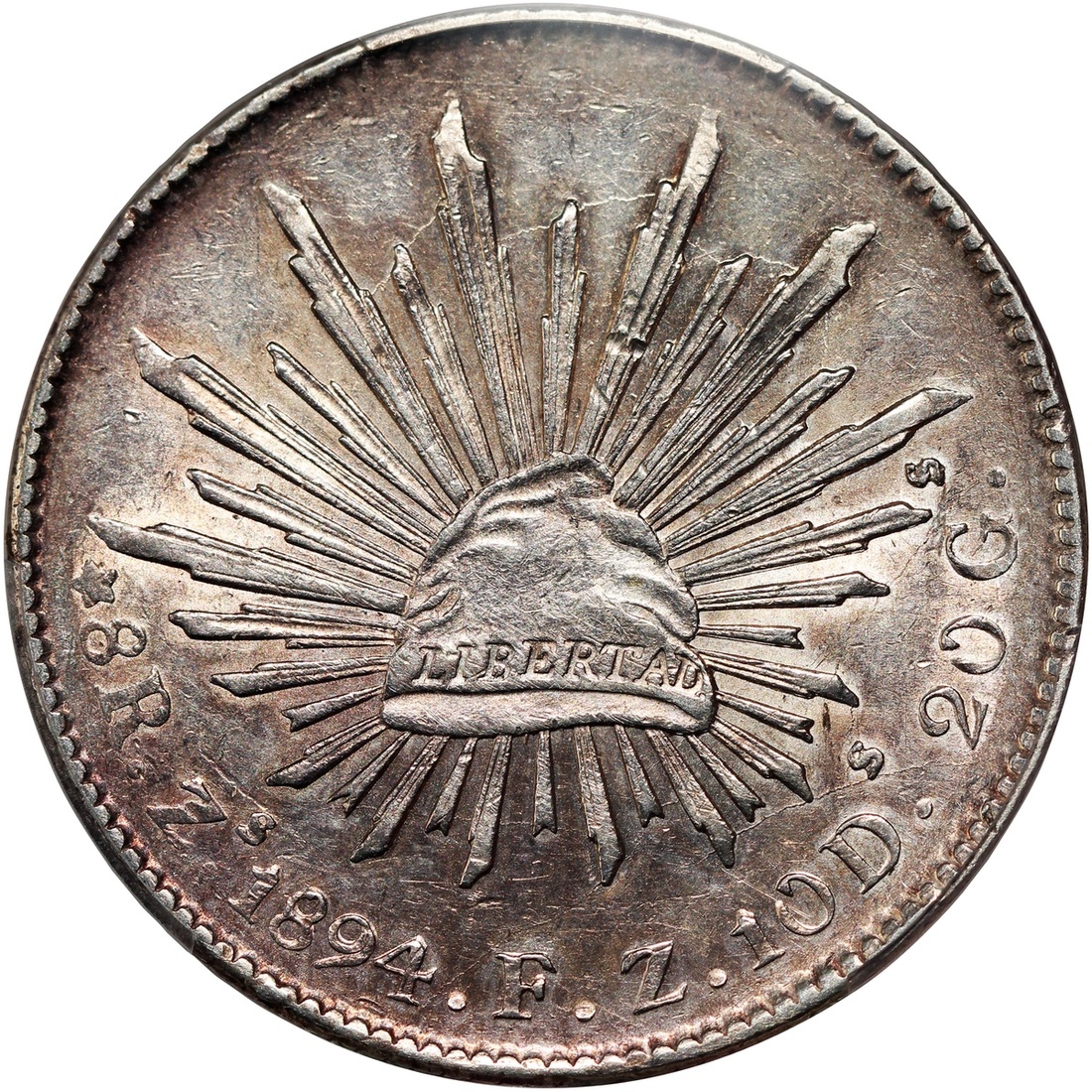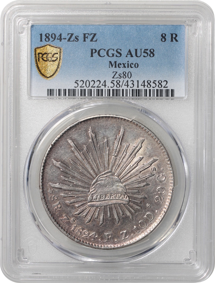 Mexico, silver 8 Reales, 1894-Zs FZ, (Zs80), PCGS AU58, #43148582.