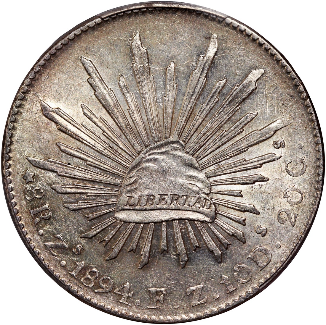 Mexico, silver 8 Reales, 1894-Zs FZ, (Zs80), PCGS MS61, #43148588.