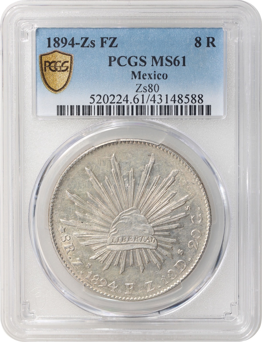 1894-Zs FZ墨西哥8里爾銀幣,PCGS MS61,#43148588.