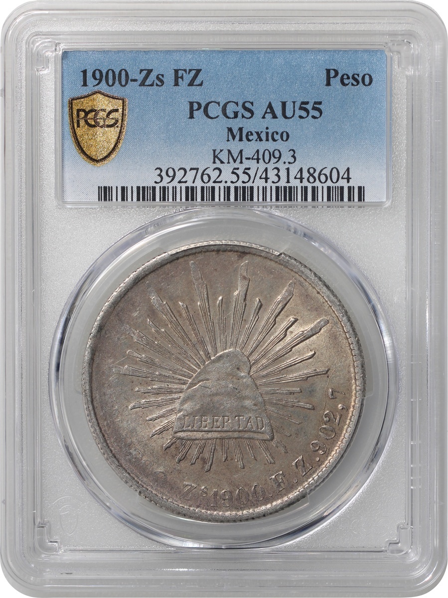 Mexico, silver Peso, 1900-Zs FZ, (KM-409.3), PCGS AU55, #43148604.