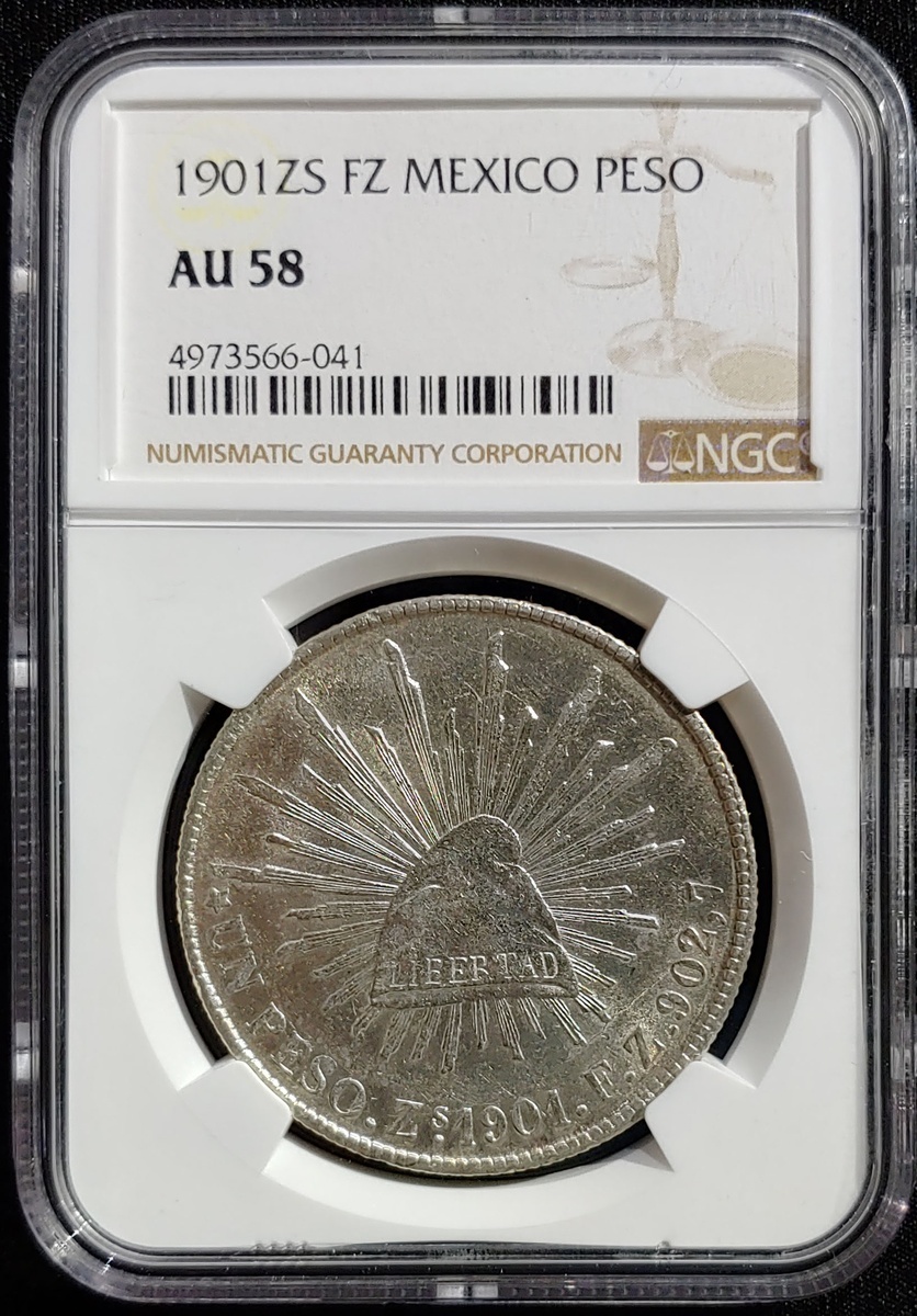 1901-ZS FZ墨西哥披索銀幣,NGC AU 58,#4973566-041