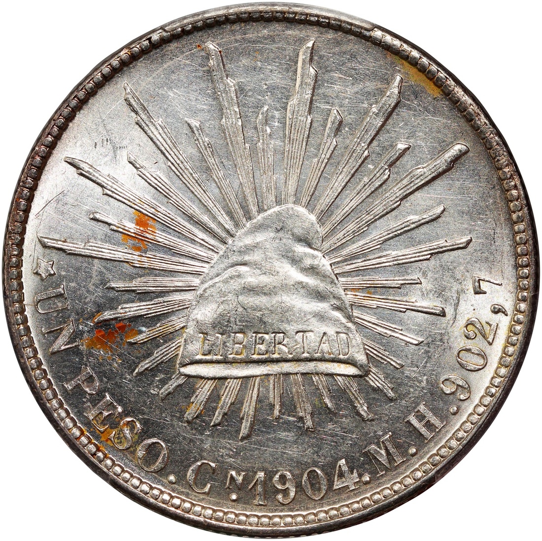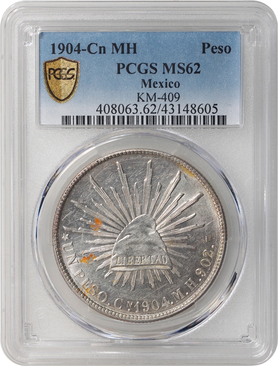 Mexico, silver Peso, 1904-Cn MH, (KM-409), PCGS MS62, #43148605.