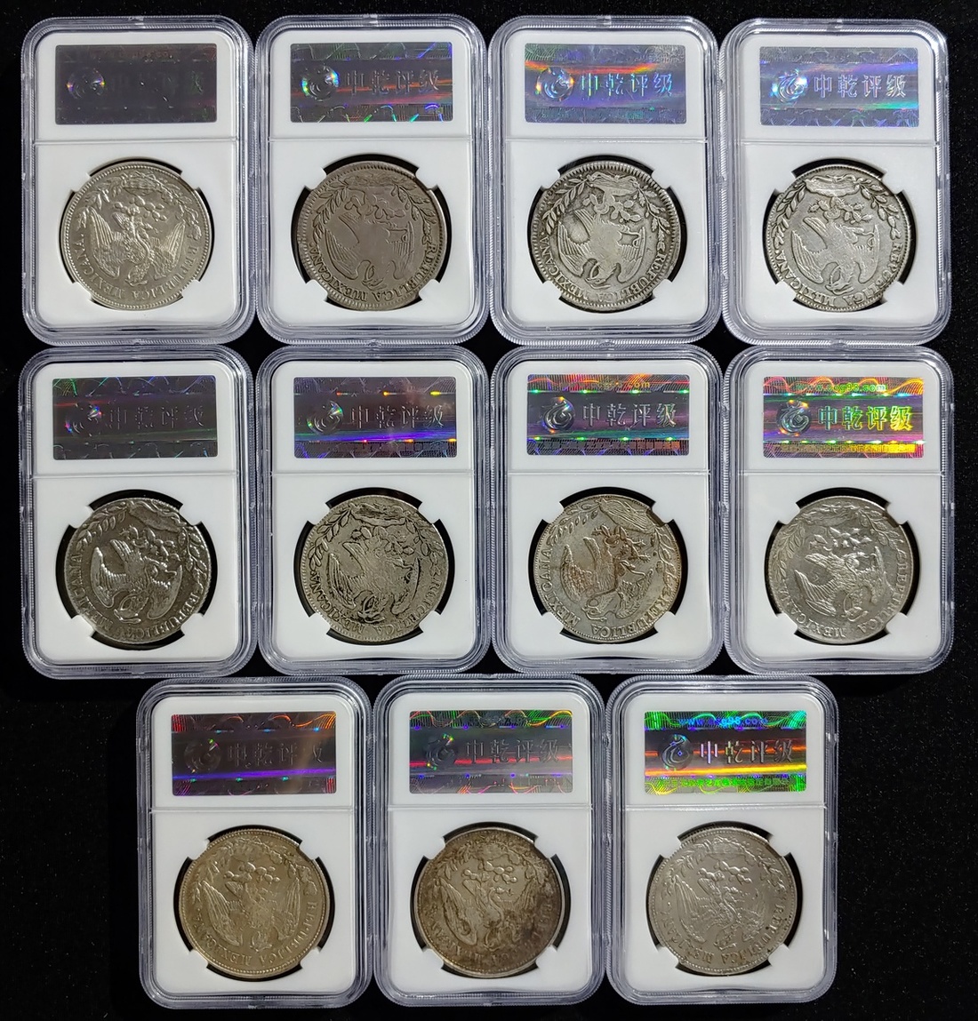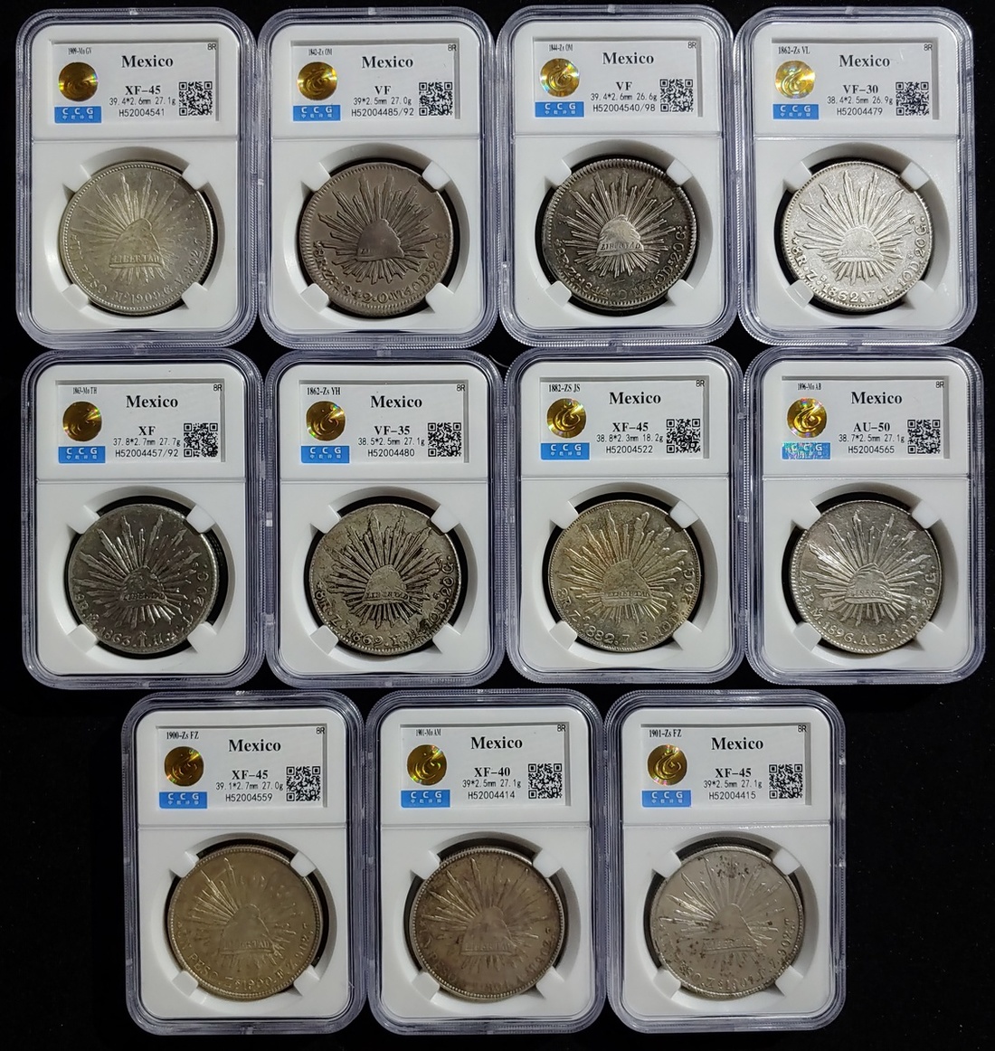 1842-1909年墨西哥八瑞爾鷹洋、壹比索銀幣一組十一枚,均中乾評級,敬請預覽(11)