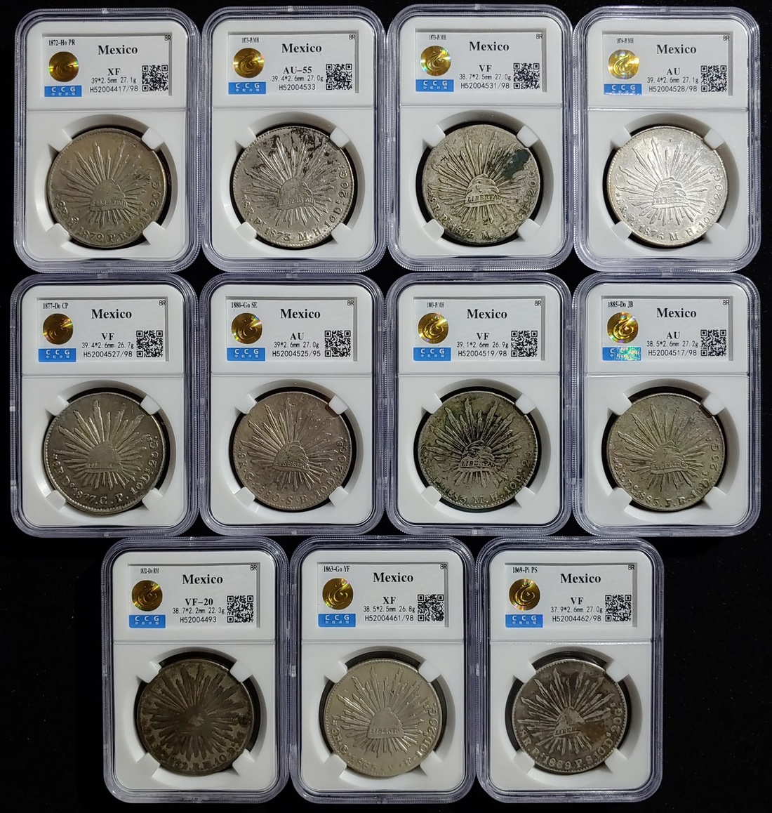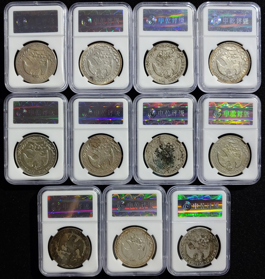 1832-1905年墨西哥八瑞爾鷹洋、壹比索銀幣一組十一枚,均中乾評級,敬請預覽(11)