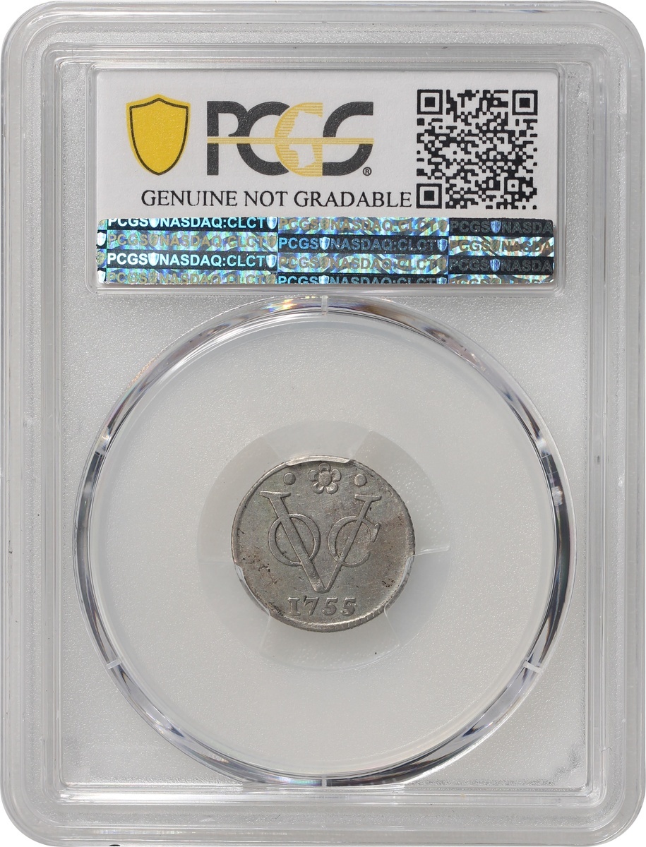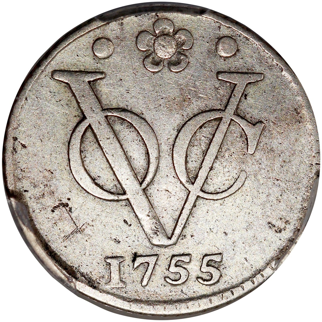 Netherlands East Indies, silver 1/2 duit, special presentation strikes produced by mintmaster on demand, 1755 VOC, PCGS SP Genuine, XF Detail, cleaned. #38847448