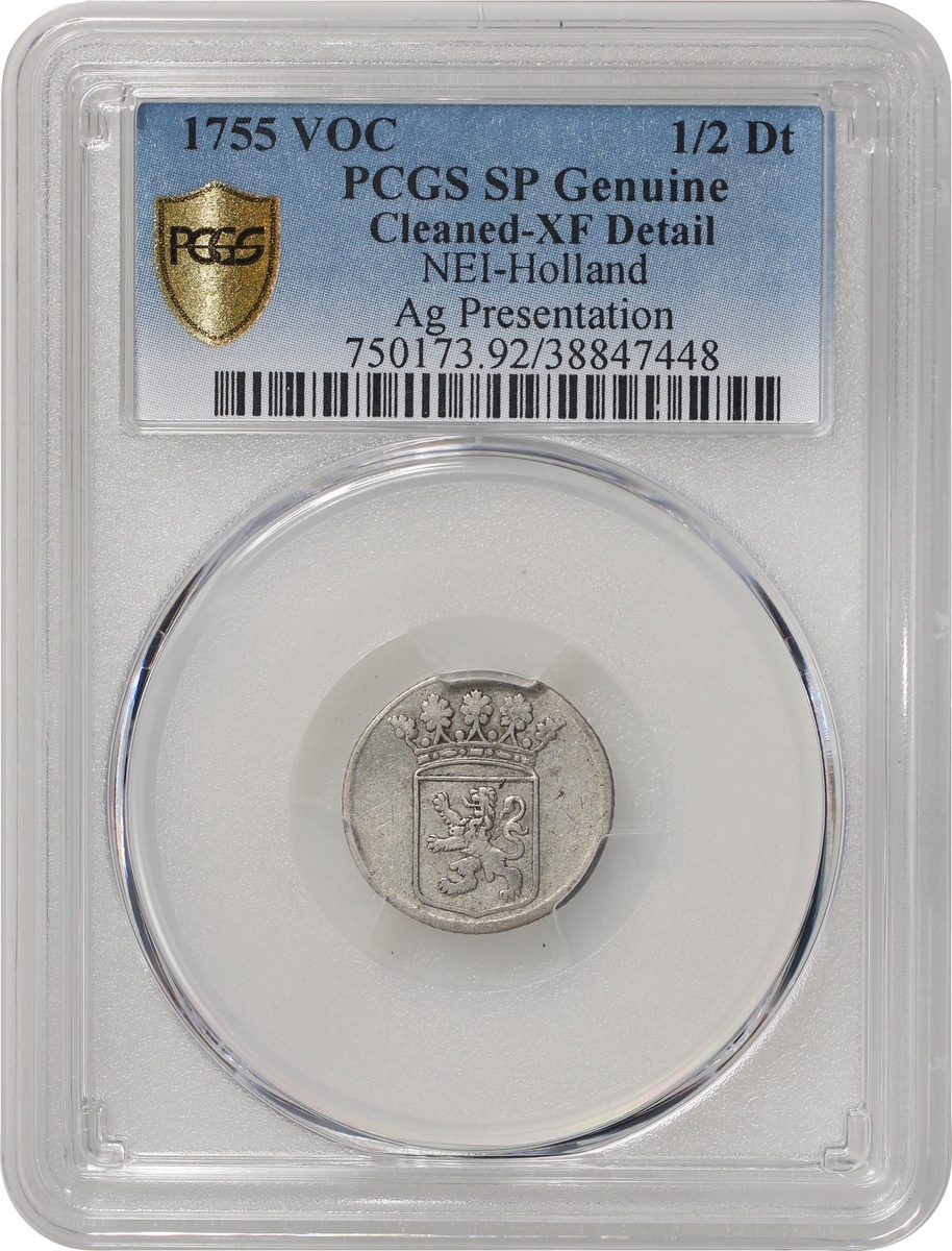 1755 VOC荷蘭1/2兌銀幣,PCGS SP 真品,XF Detail,有清洗 #38847448