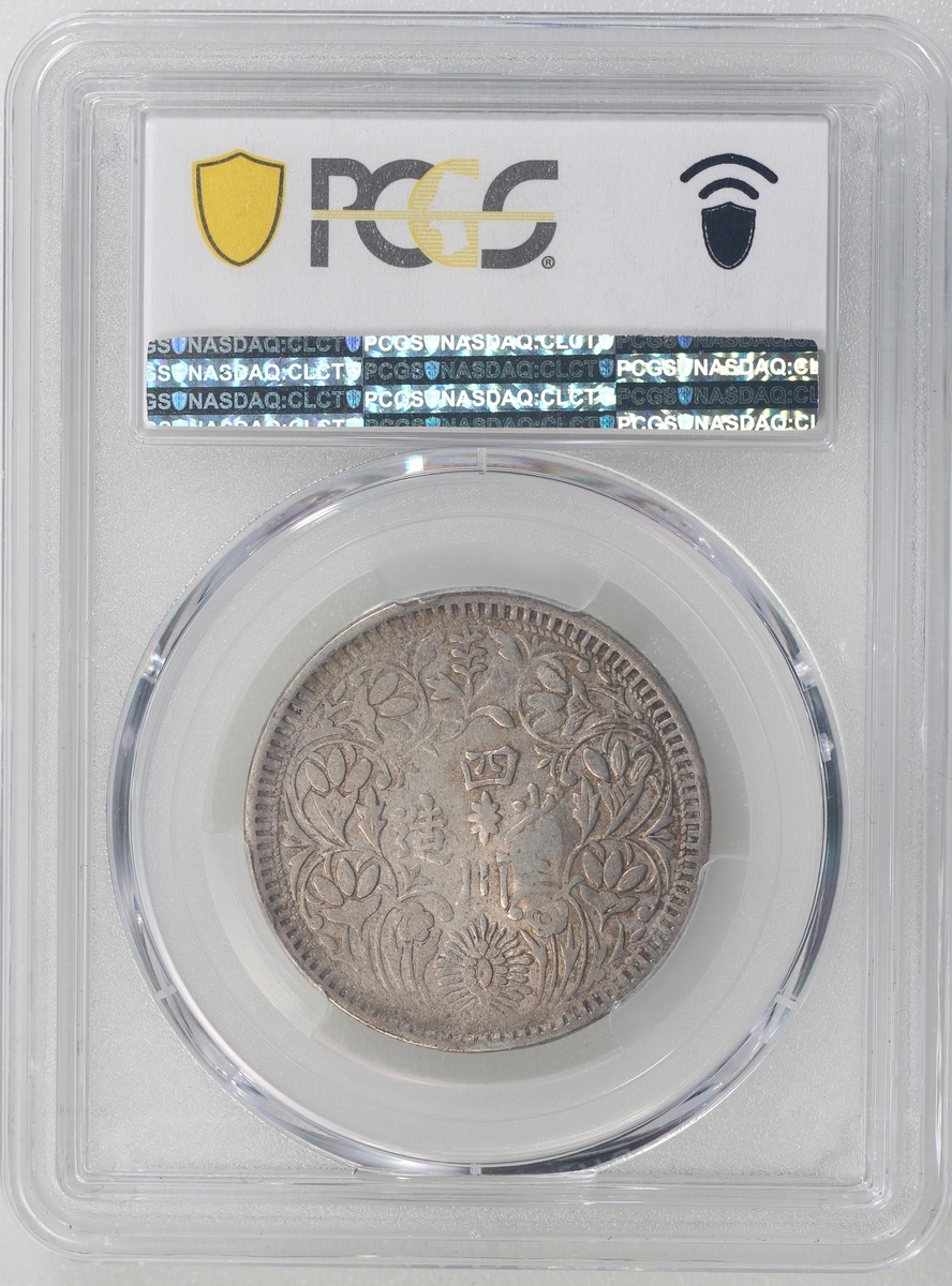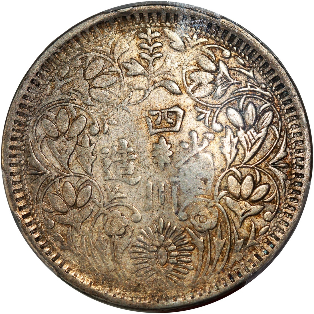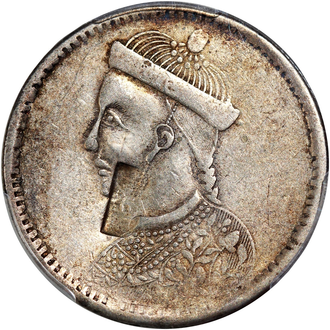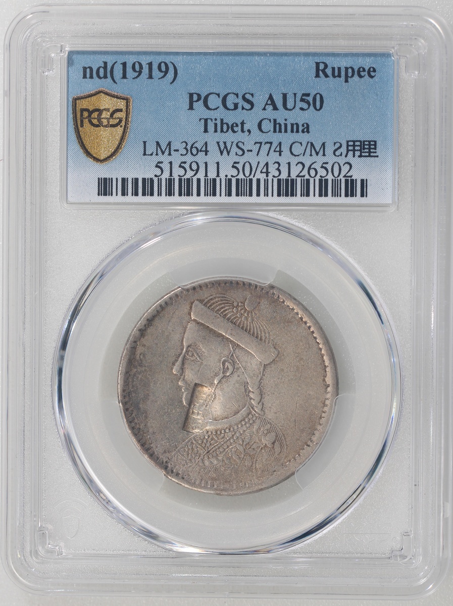 1919年西藏四川盧比銀幣,有領直花,正面帶戳印,PCGS AU50,#43126502