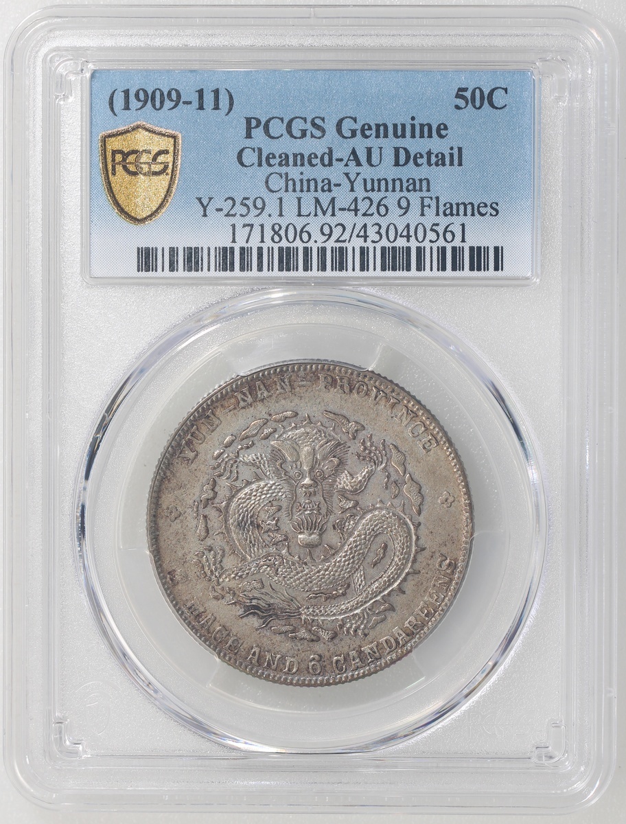 雲南省造宣統元寶庫平三錢六分,PCGS AU Detail有清洗,#43040561