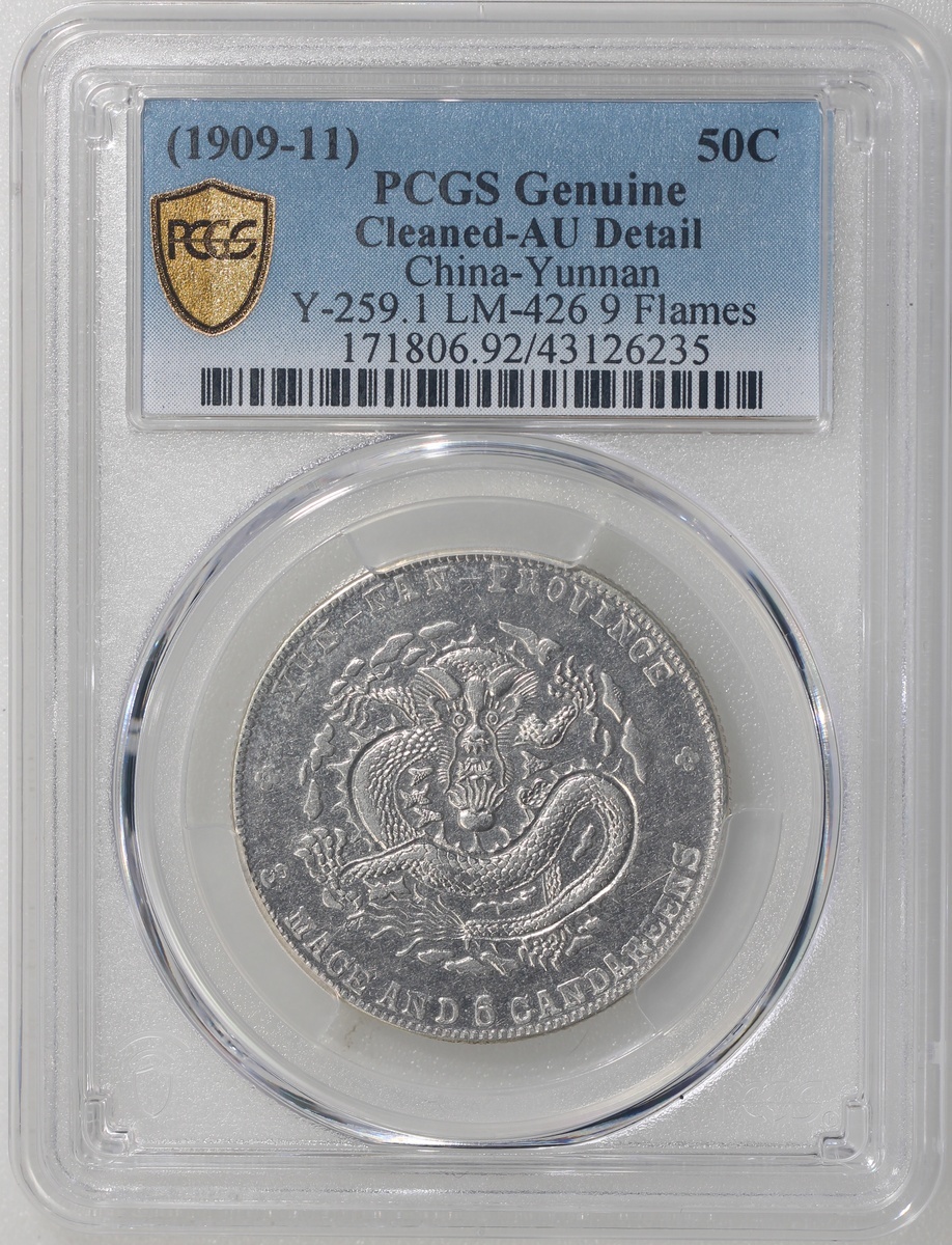 Yunnan Province, silver 50 cents, Xuantong Yuan Bao, no date (1909-11), 9 flames,