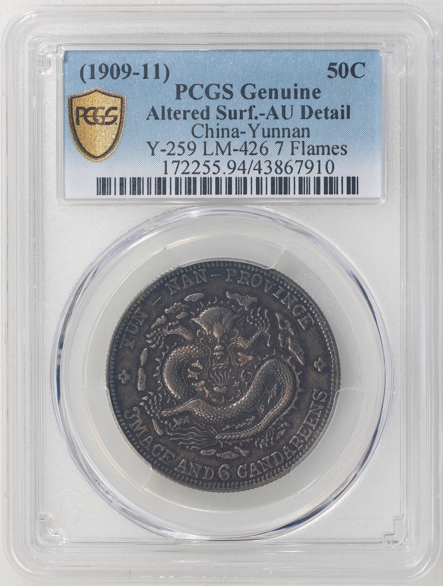 雲南省造宣統元寶庫平三錢六分,PCGS AU Detail幣面有改造,#43867910
