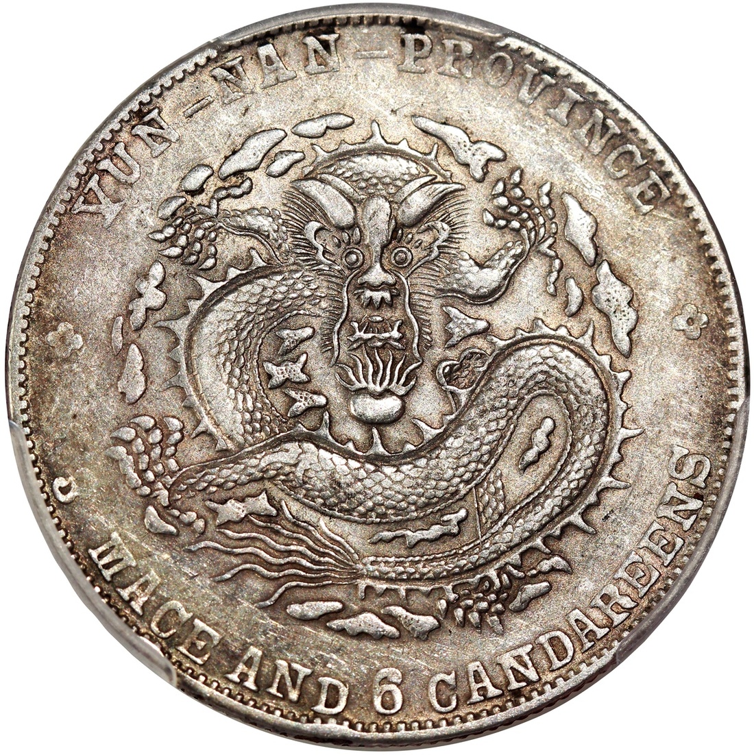 雲南省造光緒元寶庫平三錢六分,老龍,帶包漿,PCGS XF45,#43133827