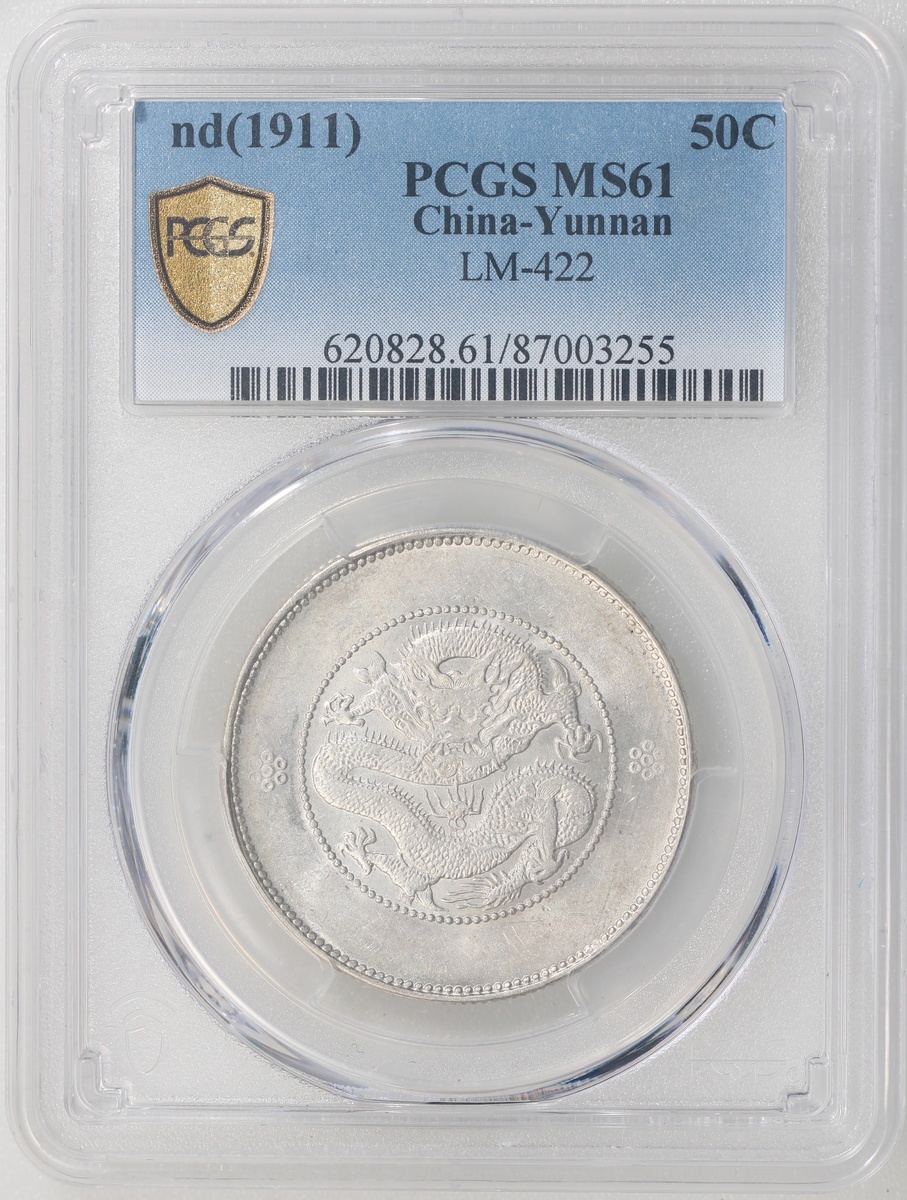 Yunnan Province, silver 50 cents, ND (1911), 'Guangxu Yuan Bao', new dragon, (LM-422), PCGS MS61, Cert. #87003255