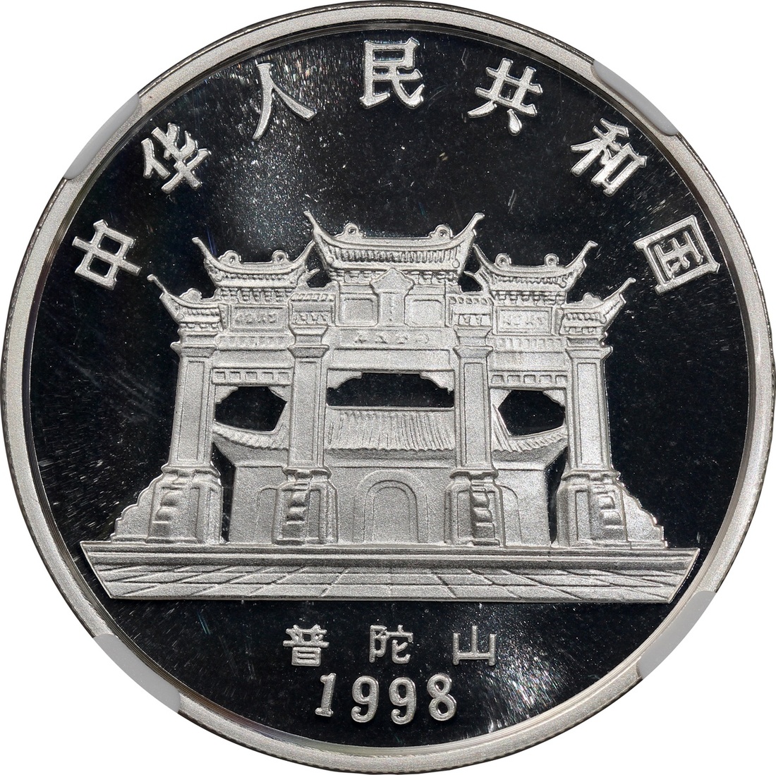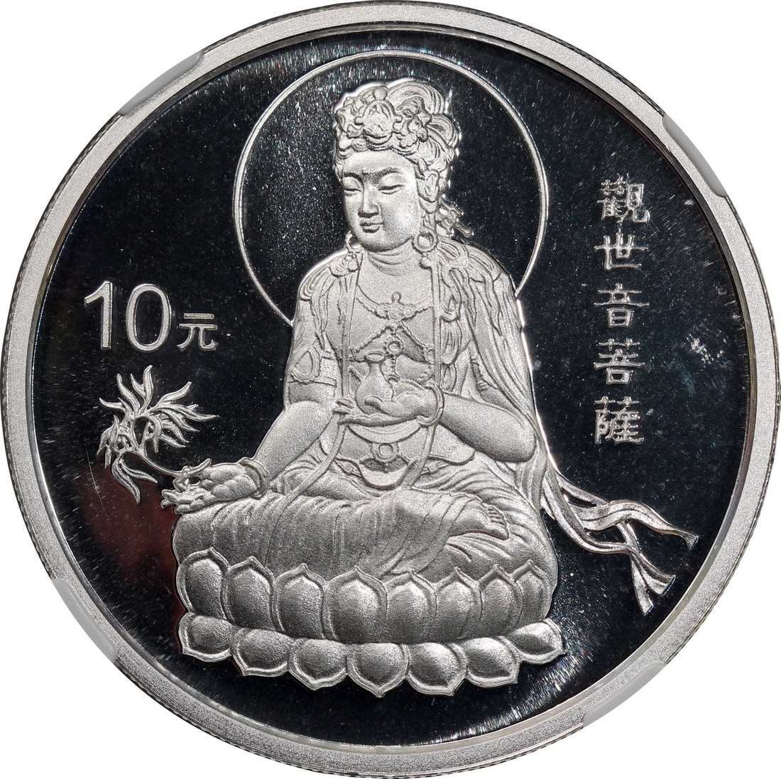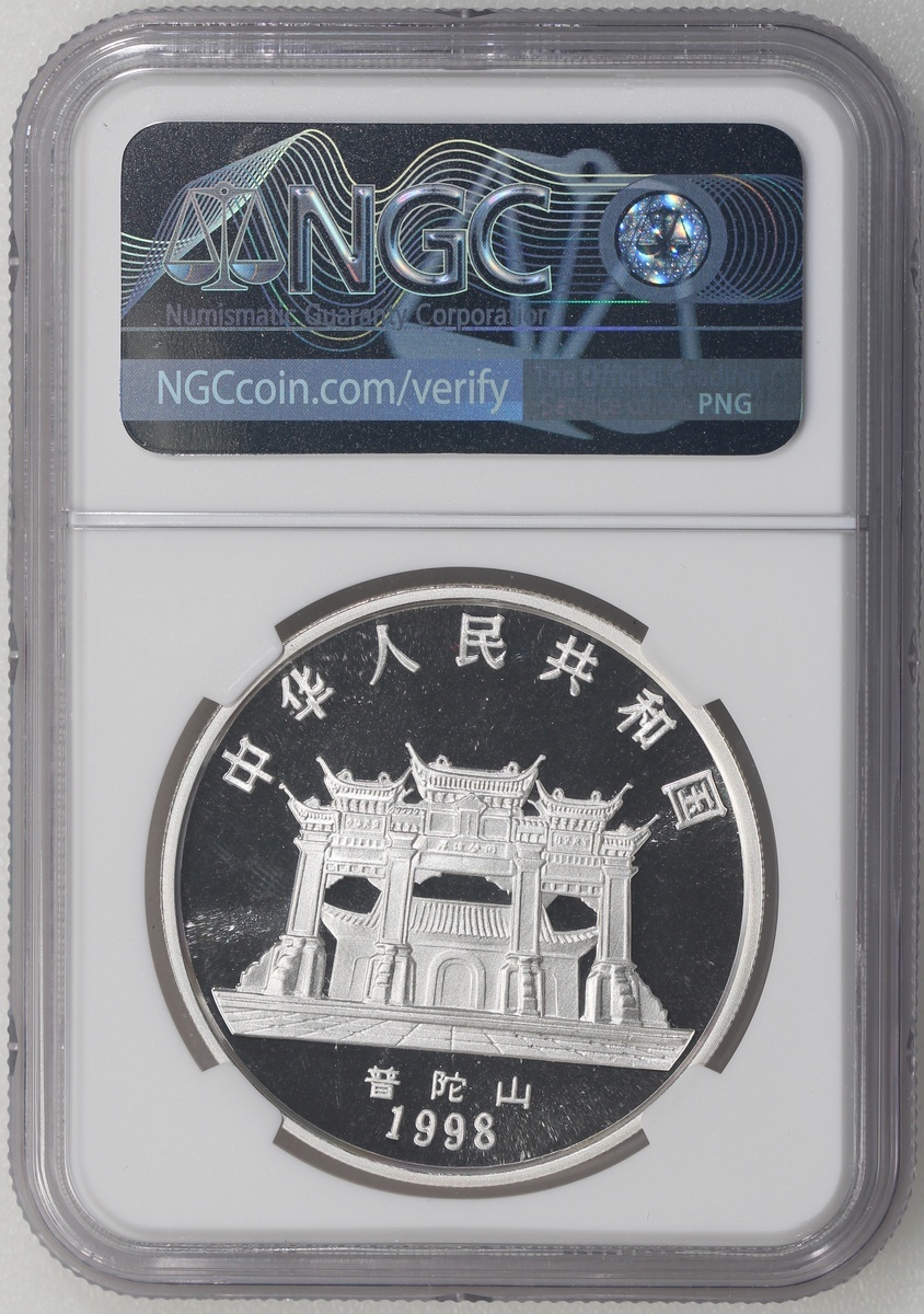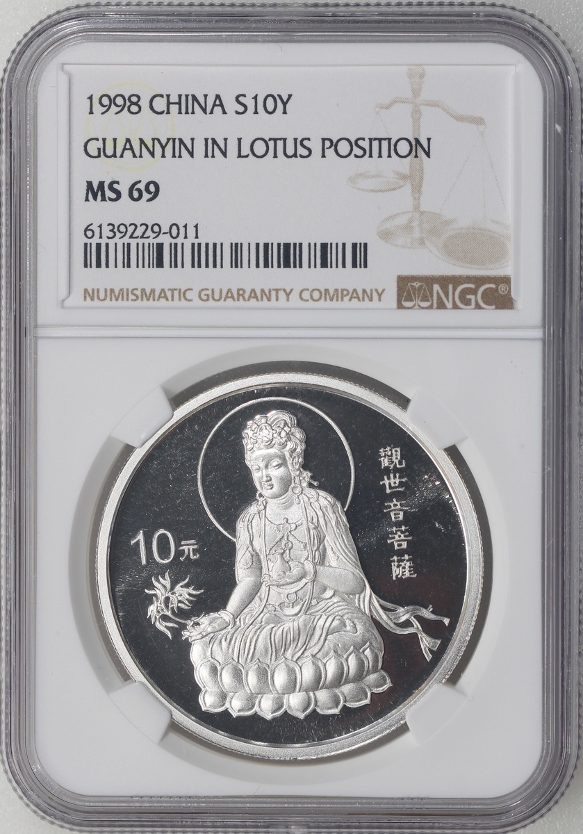 1998年中國銀幣10元,「蓮座觀音」,總含銀量1盎司,NGC MS69,#6139229-011,附證書,編號00422,發行88000枚