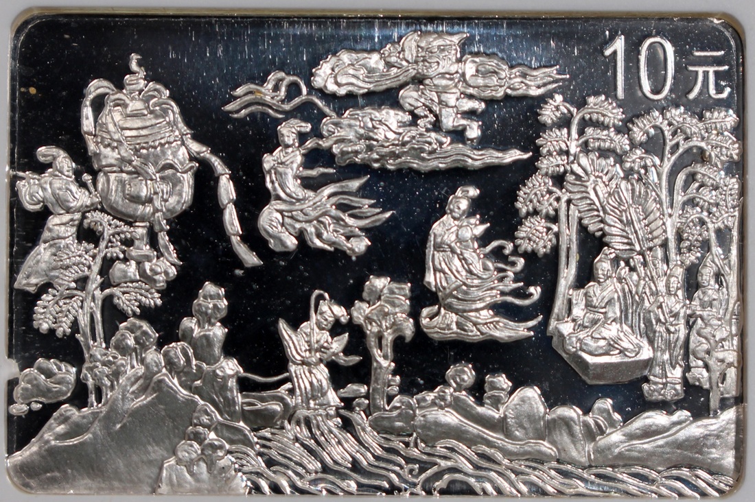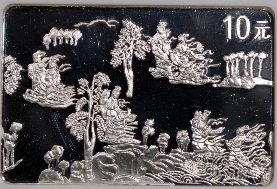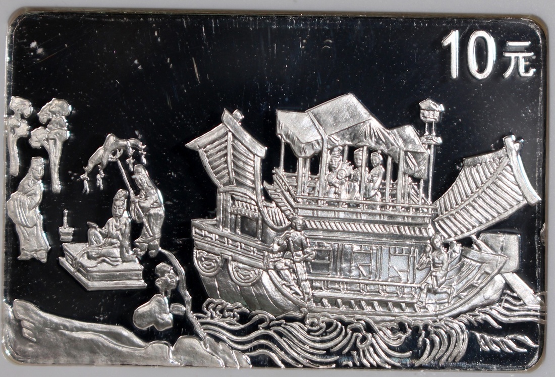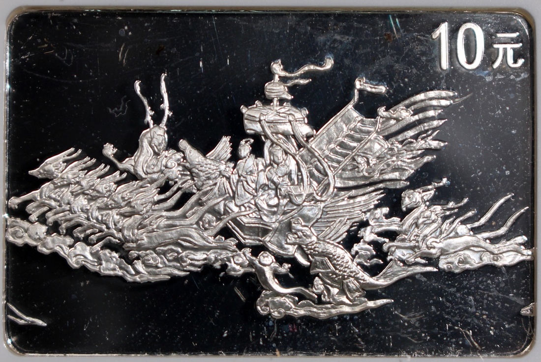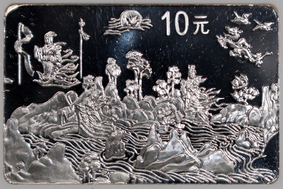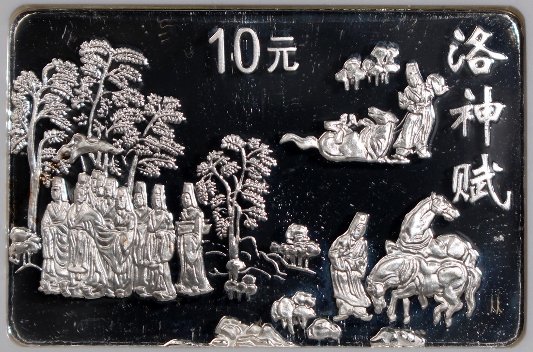 1999中國古代名畫《洛神賦圖》精鑄銀幣10元一套8枚,「歸程」、「追趕洛神」、「洛神離去」、「相見洛神」、「衆神演出」、「衆神嬉戲」、「洛神漫步」及「偶遇洛神」,總含銀量8盎司,附原盒及證書,分別評NGC PF 67 Ultra Cameo,67 Ultra Cameo,67 Ultra Cameo,68 Ultra Cameo,69 Ultra Cameo,68 Ultra Cameo,69 Ultra Cameo及69 Ultra Cameo,#6440809-022至6440809-029