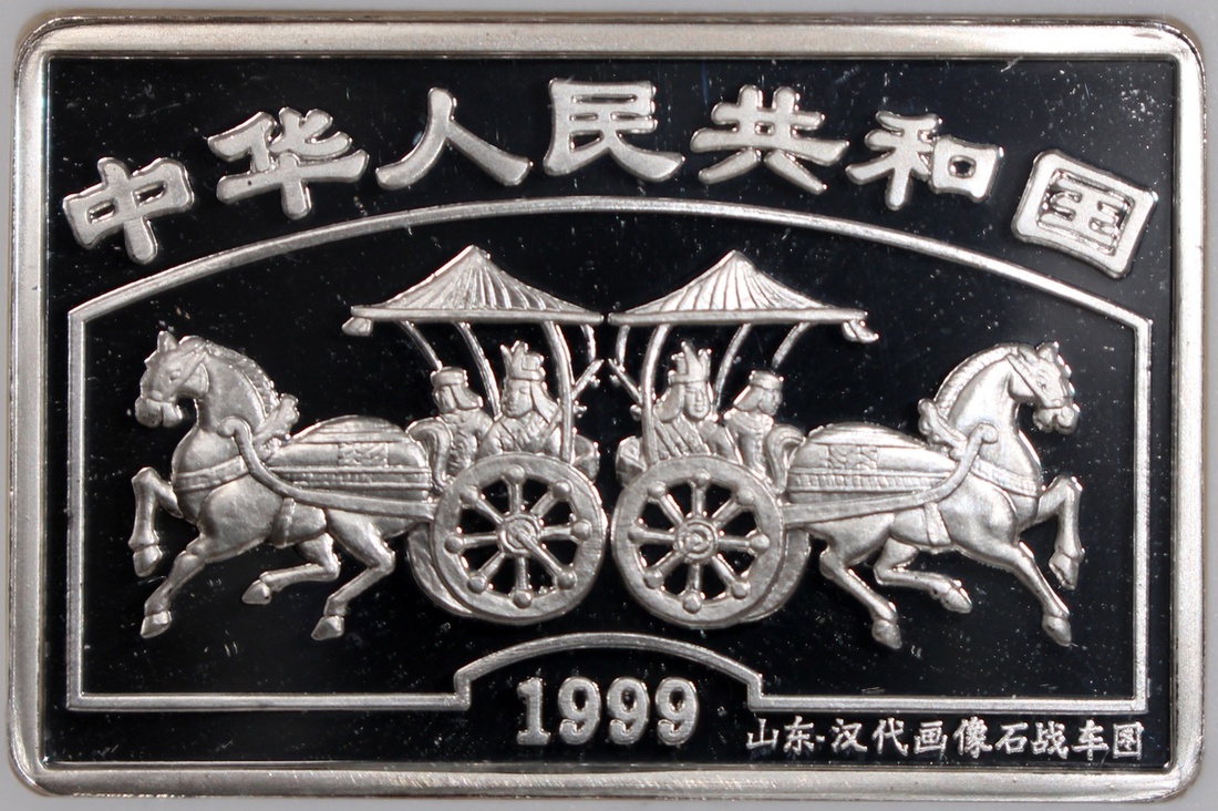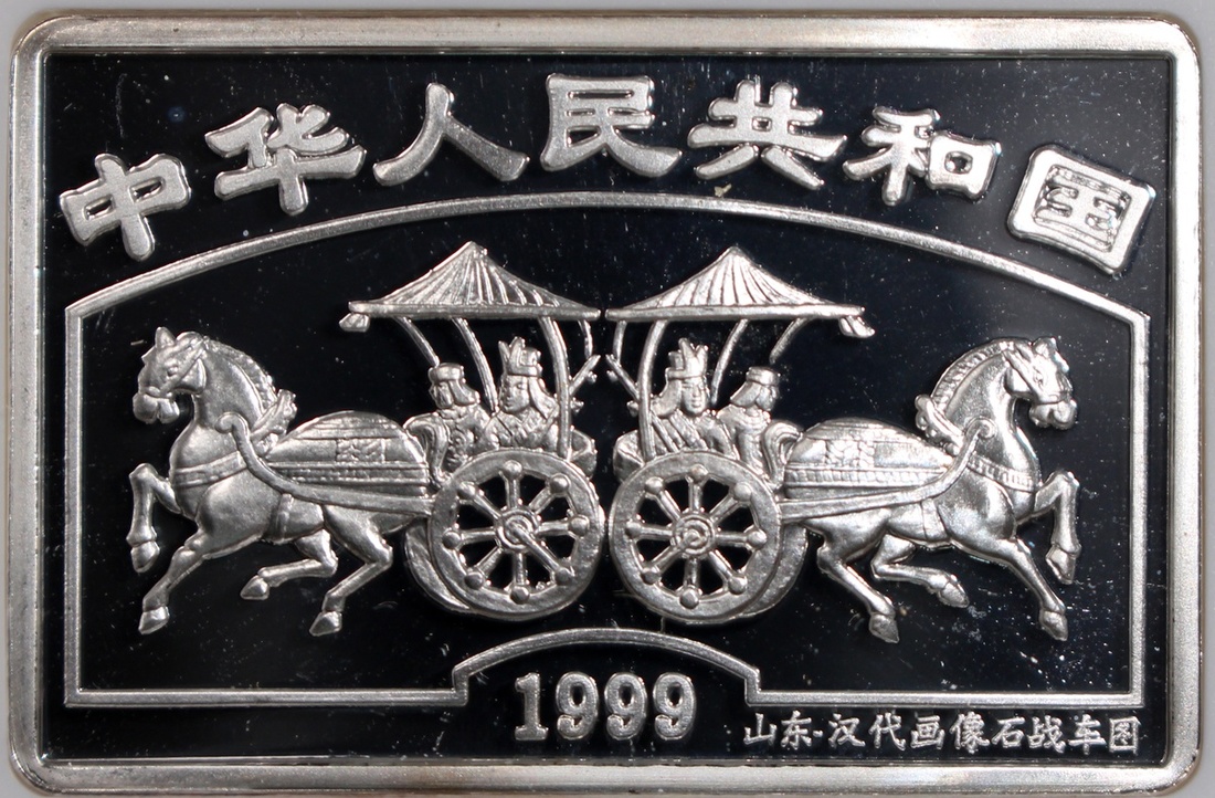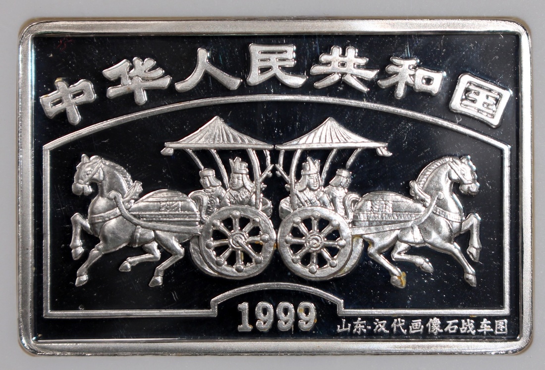 People's Republic Bank of China, a set of 8x silver proof 10 Yuan, 1999, Classic Chinese Painting, - Goddess Of Luo River, 'Horses And Carriage', 'Royal Visit', "Flying Dragons', 'Overlooking Goddess Luo', 'Celebration Scene', 'Happy Reunion', 'Beauty Of The Goddess Luo' and 'Return Journey', total ASW 8oz, with original box and certificate of issue,