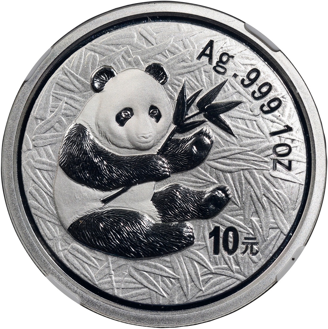 2000年中國熊貓銀幣10元,總含銀量1盎司,不附原盒或證書,NGC MS 69,#2131189-007