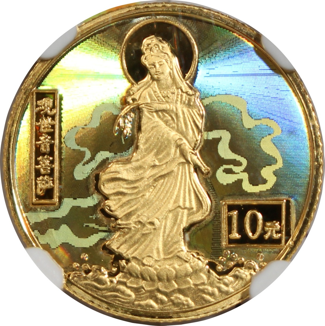 2000年中國精鑄金幣10元,「觀世音菩薩」,總含金量0.1盎司,附原盒及證書, NGC PF 69 Ultra Cameo,#6450993-011