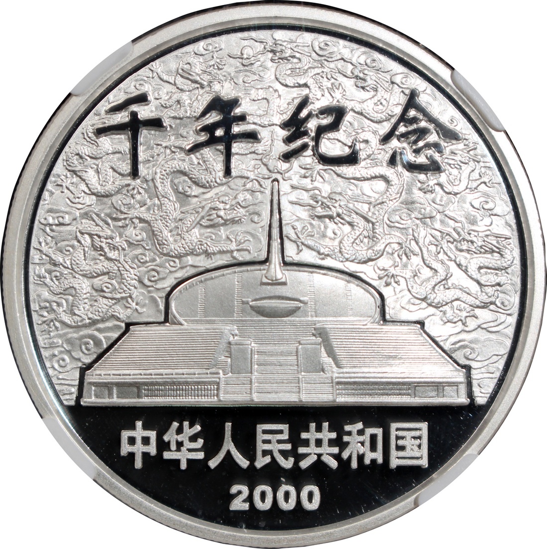 2000年中國精鑄銀幣10元,千禧年紀念,總含銀量1盎司,附原盒及證書,NGC PF 69 Ultra Cameo,#6342453-037