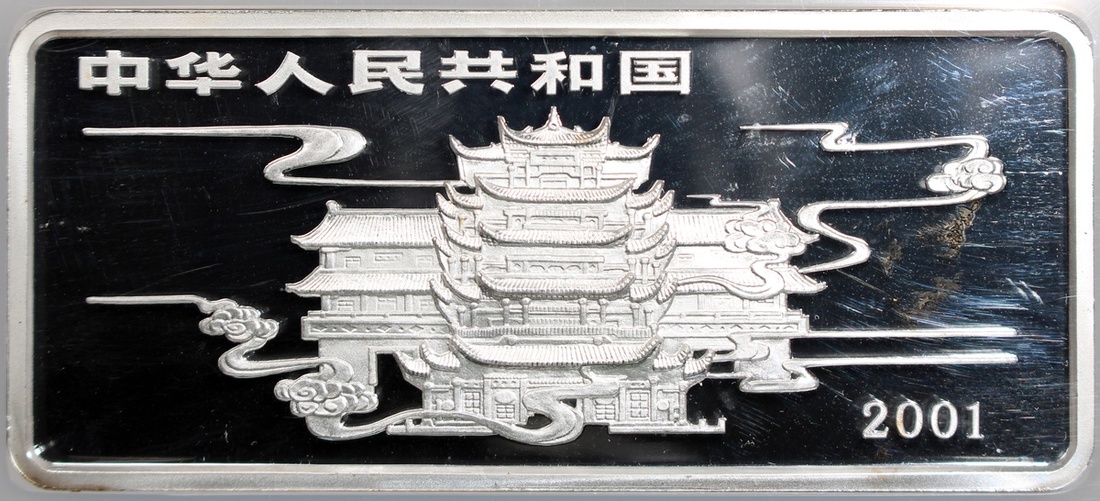 People's Republic Bank of China, 1x coloured silver proof 50 Yuan, 2001, Chinese Folktales, 'Eight Immortals Crossing The Sea', total ASW 5oz, with original box and certificate of issue,